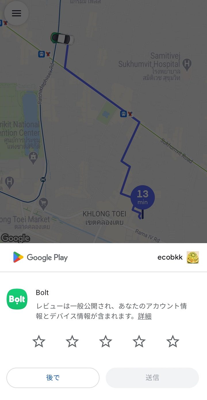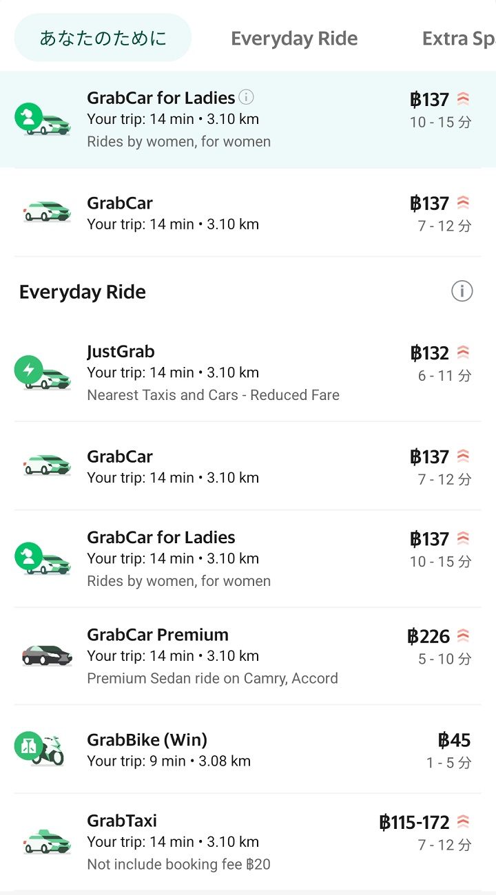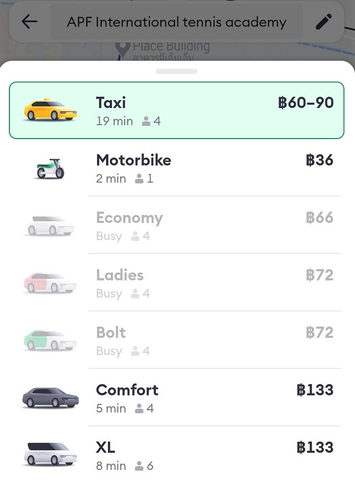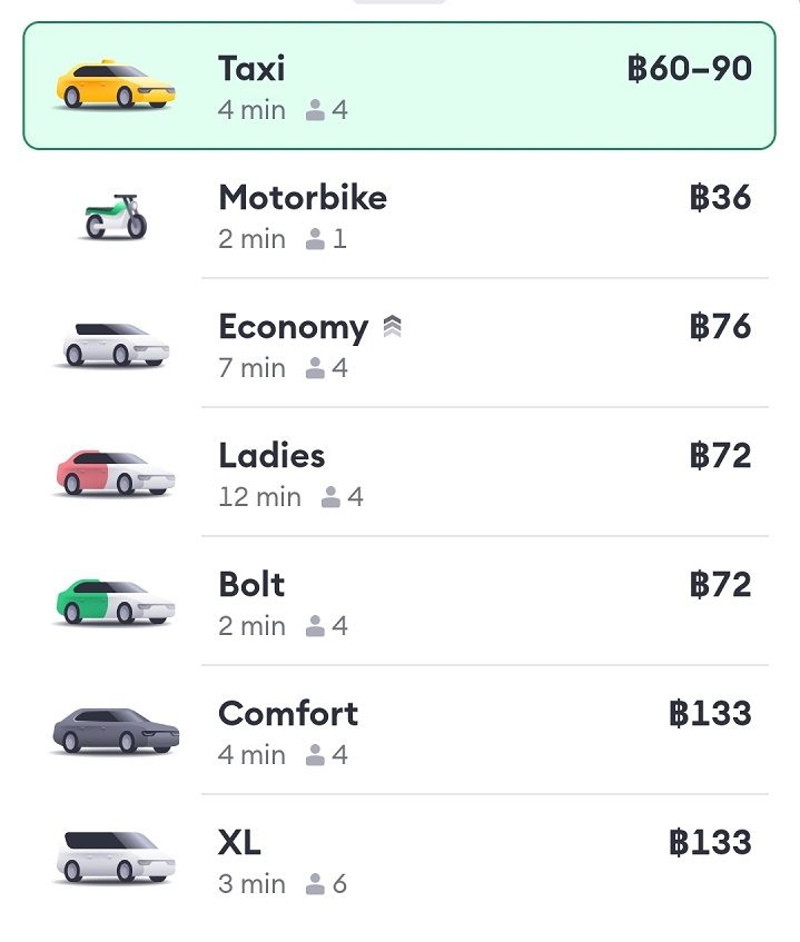タイではBoltとGrabは競合なので、大まかなサービス内容やアプリの使い勝手は似ていると思いますが、Grabではできる事前予約が、Boltではできないなど、提供されているサービス内容はまだ少ない印象です。