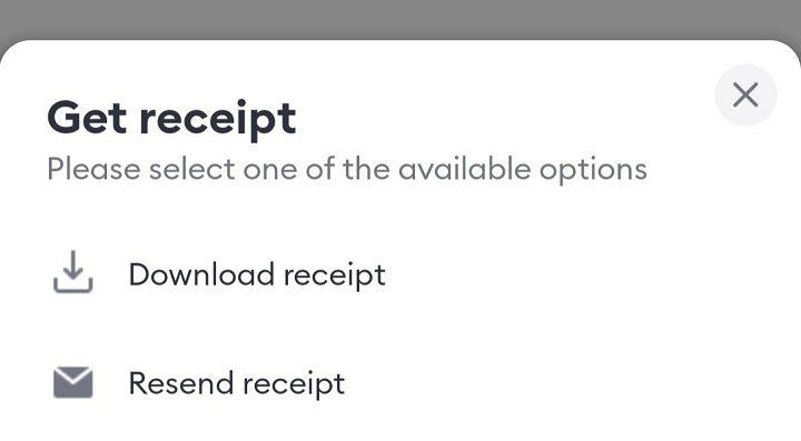 画面をスクロールし、一番下に表示されている "Get receipt" をクリックします。すると、2つの方法で領収書を入手できるようになっています。
