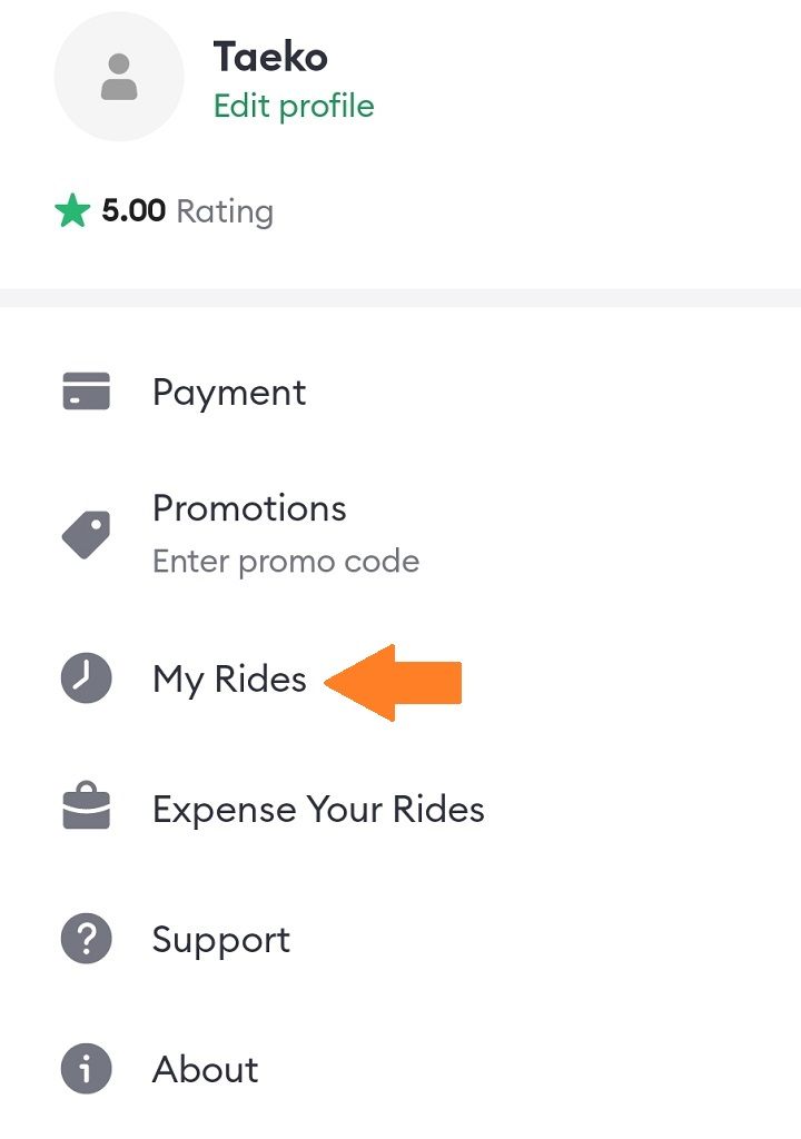 続いて、 "My Rides" をクリックすると、過去の乗車履歴が表示されます。その中から、領収書を発行したい履歴をクリックして、その一番下にある "Get receipt" をクリックすると、領収書(電子データ)を入手することができます。