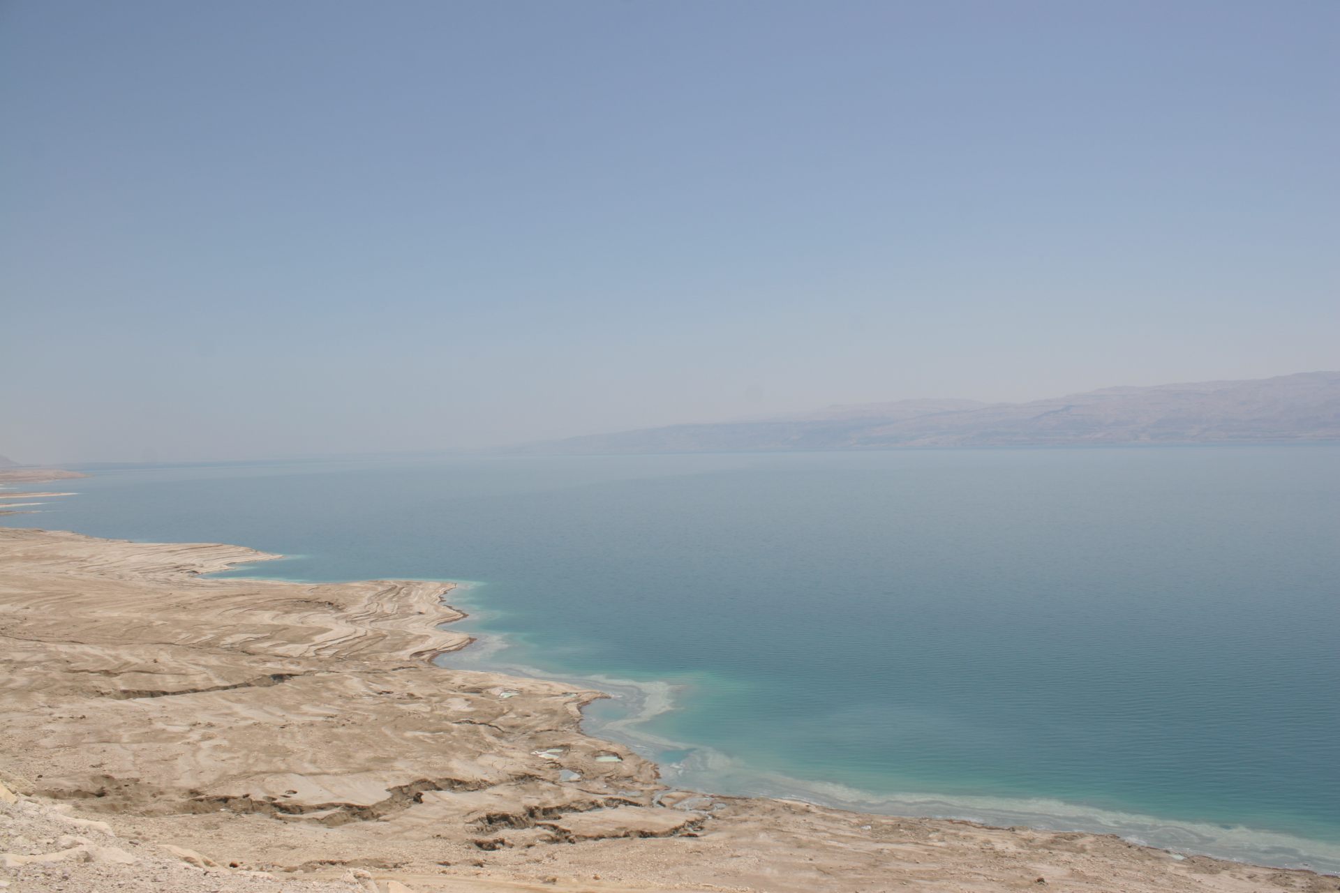 ほんの少し小高い丘まで歩みを進めると遠くに死海が広がっていた。