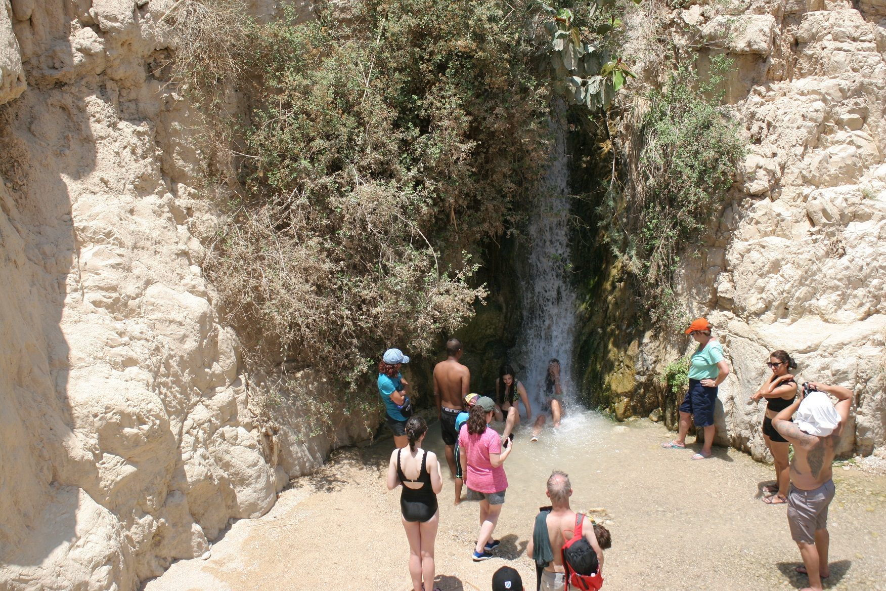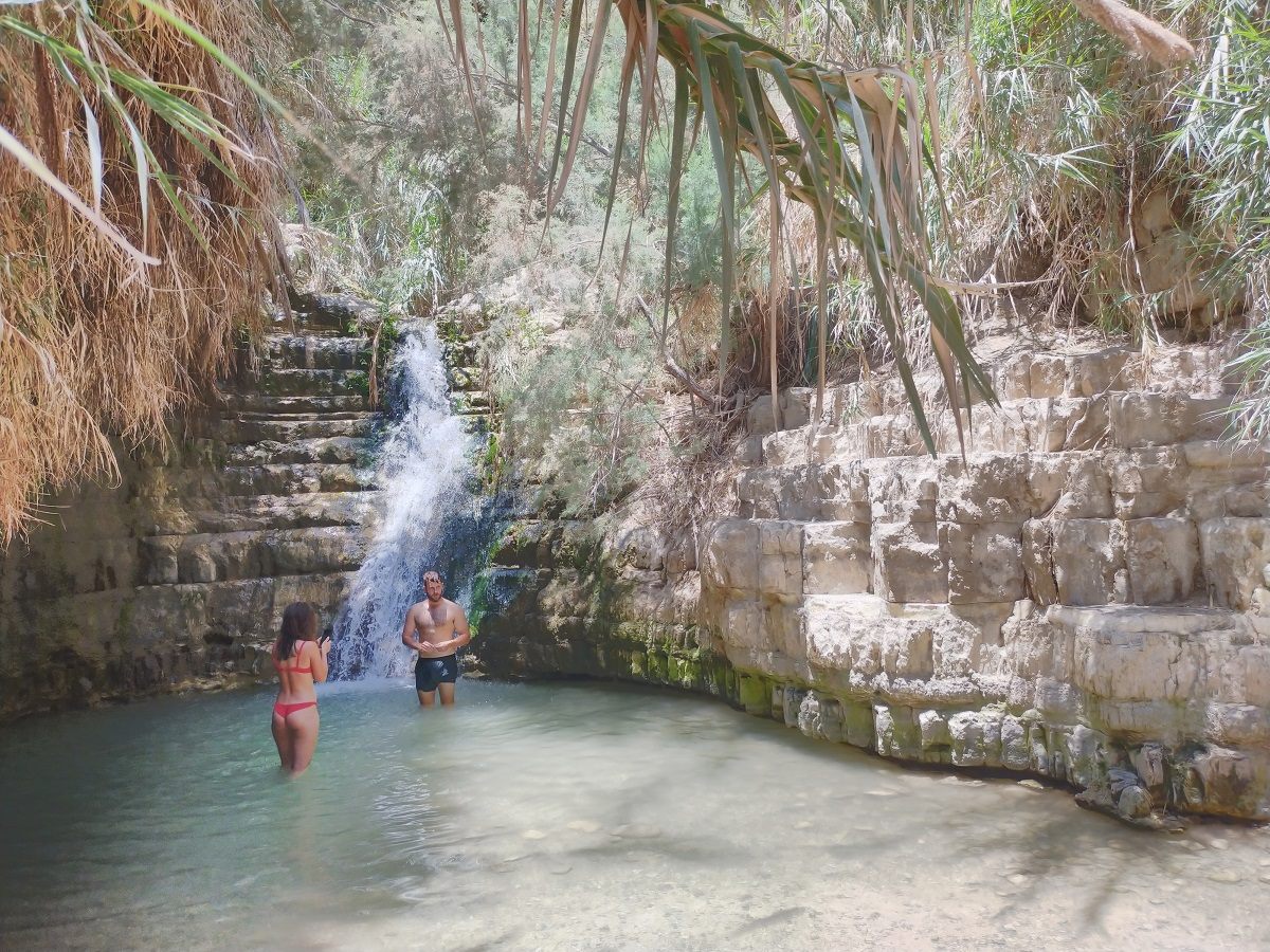 死海での楽しみは海に入ってプカリと浮くことなのだが、その前にハイキングに誘われた。エン・ゲディ国立公園はダビデ川とアルゴット川が流れるふたつの渓谷から成り立っており、トレッキングや川遊びで人気の場所だという。単純に山あいの渓流、オアシスというばかりではなく旧約聖書に記された歴史あるところでもある。