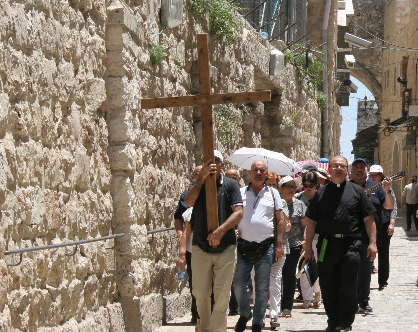 この「悲しみの道」を辿ることを目的としてエルサレムにやって来る人は少なくない。今回出くわしたのはイタリア人の信者グループ。先頭の人が木製の十字架を背負い、後に続く者たちはイタリア語で朗々と謳い続けている。言葉も歌の意味もわからなかったがこの情景だけでもこの場所の神聖さが伝わってくる。