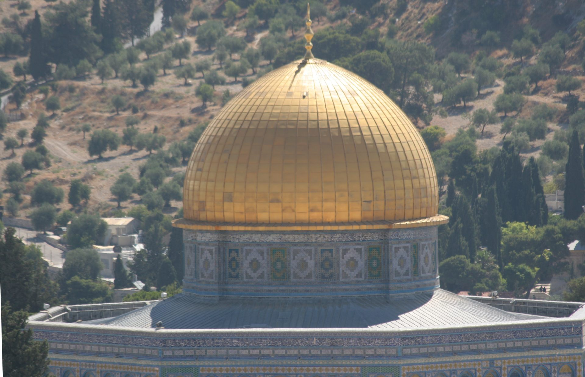 638年に岩を守るために木造の会堂が建てられ、岩のドームの完成は691年。その後1500年代前半にオスマン朝下でブルーのタイルが加えられた。現在みられる金のドームは1960年頃に当時のヨルダン国王が私財を投じて張り替えたものだそうだ。