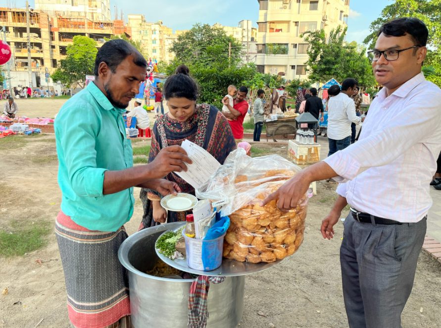 バングラデシュの現地スタッフと巡るストリートフード、「○○プーリー」の食べ歩きタイムも、すっかりお腹いっぱいになったので、今日はここでお開きです。おいしいスナックとおしゃべりで気分転換ができたので、これで、みんなでもうひと仕事頑張れそうです。ぜひ、気になる「○○プーリー」を食べながら、現地の皆さんとおしゃべりを楽しみつつ、ダッカのおやつタイムを満喫してみてはいかがでしょうか。