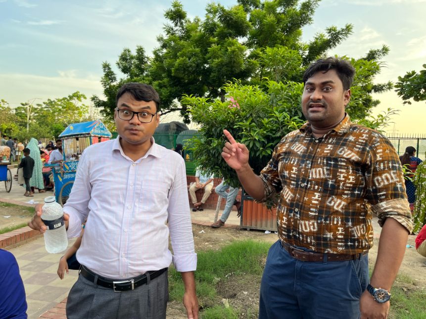 続いて、先ほどの Police Plaza Concord Shopping Mall のすぐ隣、象の置物が目印の「Jhilpar公園」にやってきました。ここは湖沿いの公園で、夕方になるといろんな屋台が集まり、たくさんの人たちがスナックタイムを楽しみにやってきます。