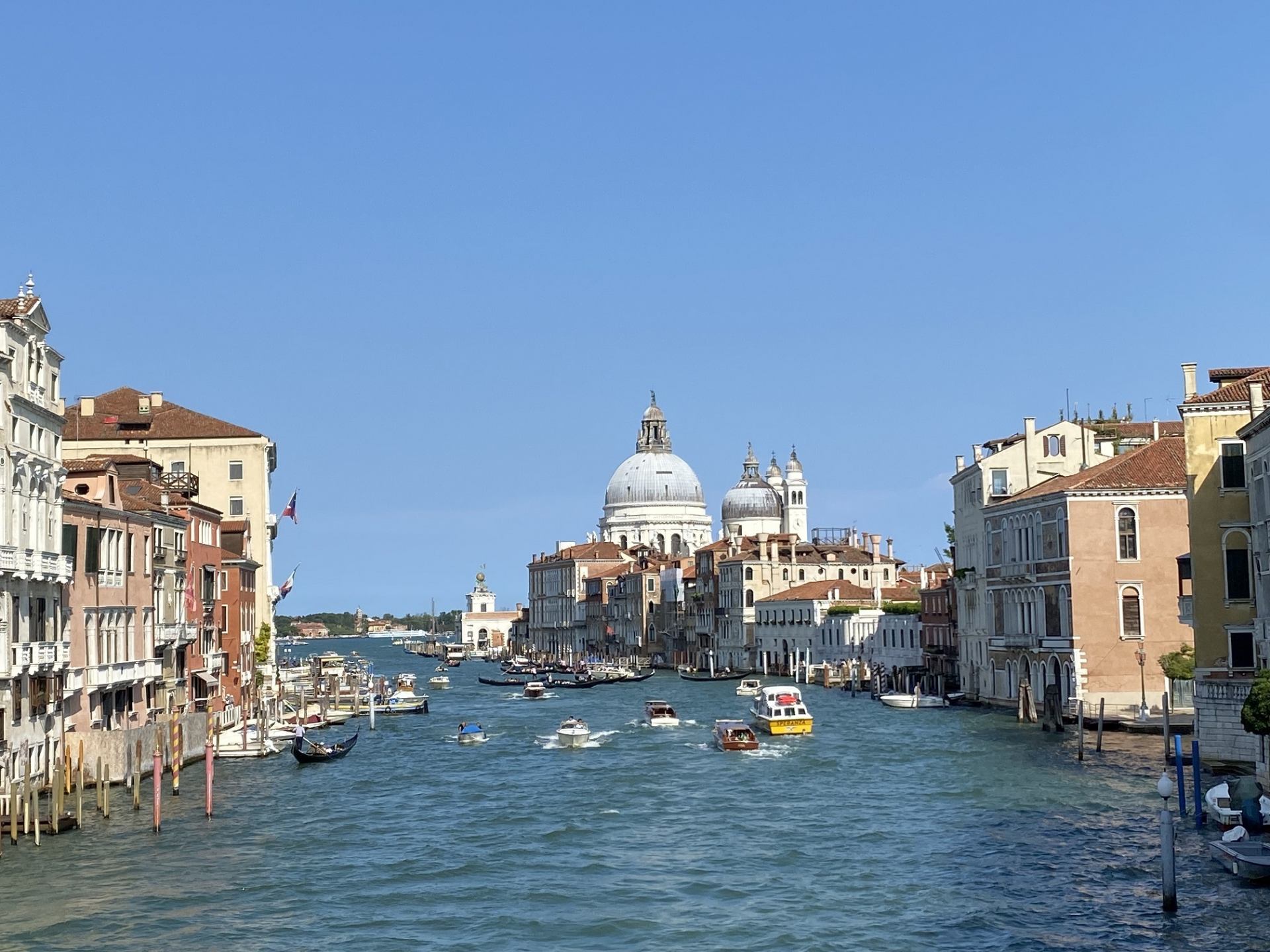 ゴンドラの撮影が行われたアカデミア橋は、サン・マルコ広場から歩いて10分ほど。ベネチアらしい写真を撮影したい! という人におすすめの人気スポットで、大運河に架かる橋からは、ゴンドラや水上タクシーが走る姿や、美しいクーポラが特徴的なサンタ・マリア・デッラ・サルーテ教会を望むことができる。周辺にはベネチア派絵画を集めたアカデミア美術館や現代絵画のコレクションが一堂に会するペギー・グッゲンハイム美術館などがあり、サン・マルコ広場に比べると静かでゆったりと散策ができるエリアでもある。