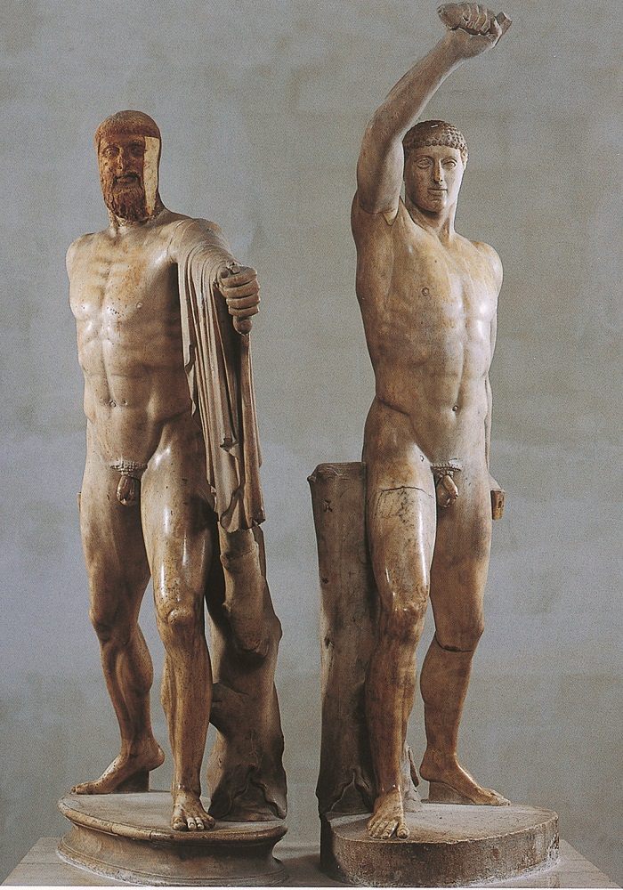 暴君ヒッパルコスを殺害した若者像。紀元前6世紀にアテネ市民の注文により制作された「解放のシンボル」
