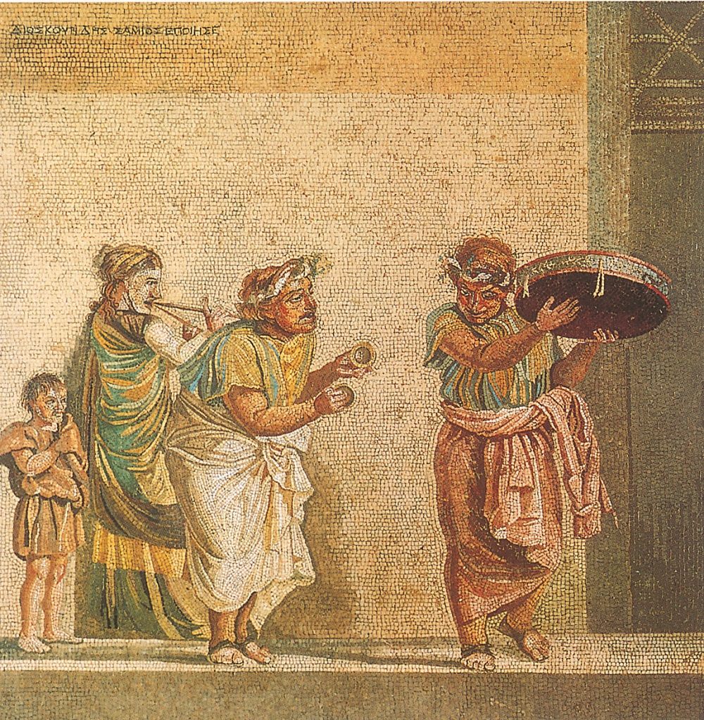 生と死は誰にも平等であるというヘレニズム期の考えを現した比喩的作品。邸宅の床に描かれていた