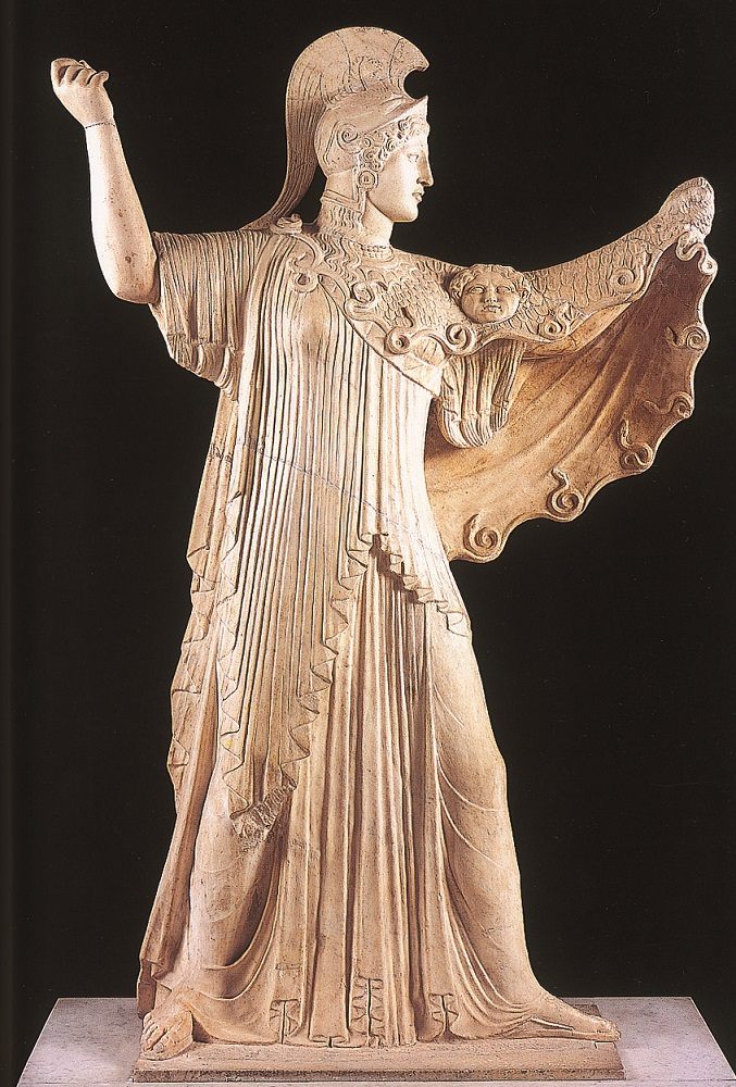 ギリシア神話の知恵・芸術・工芸・戦略を司る女神。兜で武装した姿は雄々しく勇壮