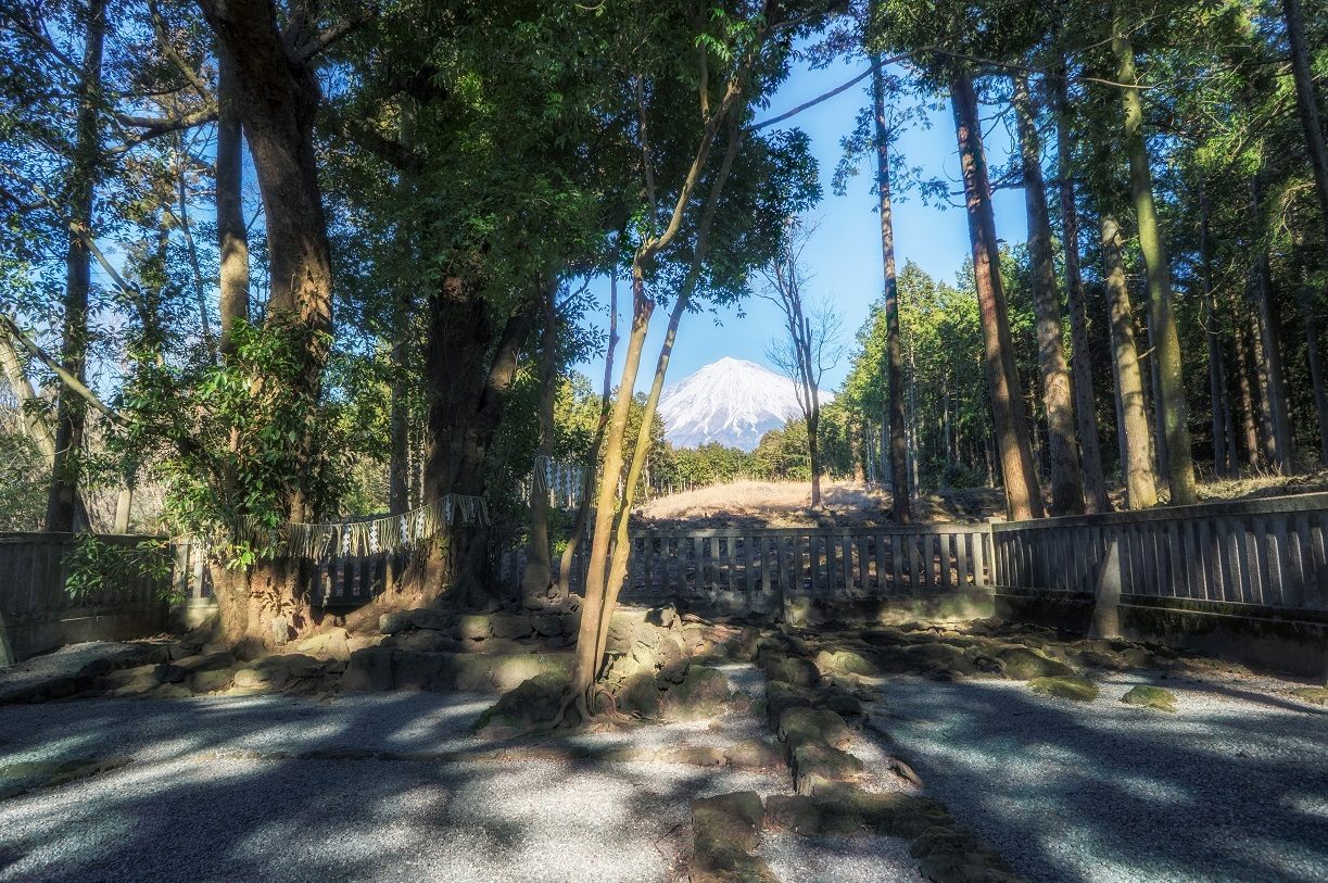 約1300社ある浅間神社の総本宮である富士山本宮浅間大社の起源となるこの神社は、全国にある浅間神社のなかで最も古いとされています。境内に本殿にあたる建物はなく、籠屋(社務所)でお参りするか遥拝所から富士山を拝むのが基本の参拝方式です。かつて本殿を造ろうと試みたものの、何度も強風で飛ばされてしまい、「これは神の祟りだ」と造営を断念したのだとか。