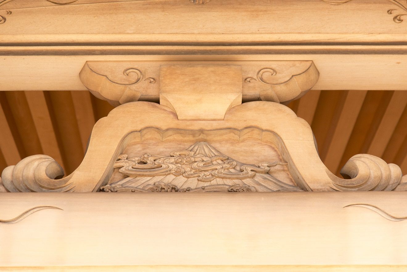 社殿の蟇股(かえるまた)には富士山の彫刻が施されています。まさに霊峰富士を仰ぐ神社ならではです。