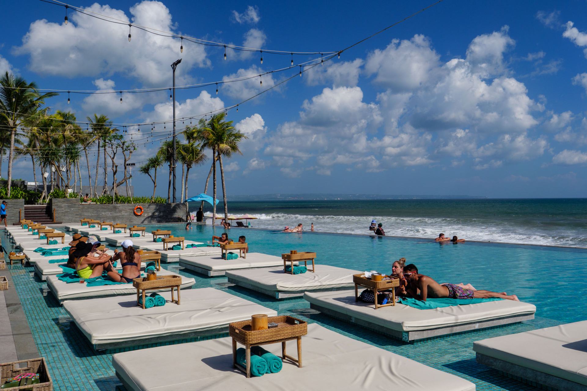 インド洋に沿って浜辺が続くチャングーは、欧米からの旅行者が多く、サーフカルチャーとバリ漁村の雰囲気が程よくミックスされた最旬エリア。カフェバー、エンタメ、リラクゼーション施設を複合したビーチクラブが点在する流行発信基地です。そんなチャングーの一等地に2022年8月にオープンしたのが世界最大規模を誇る「アトラス・ビーチクラブ」。日中はデイベッドで海景を楽しみ、壮大なサンセット観賞のあとは、深夜までナイトクラブで盛り上がります。