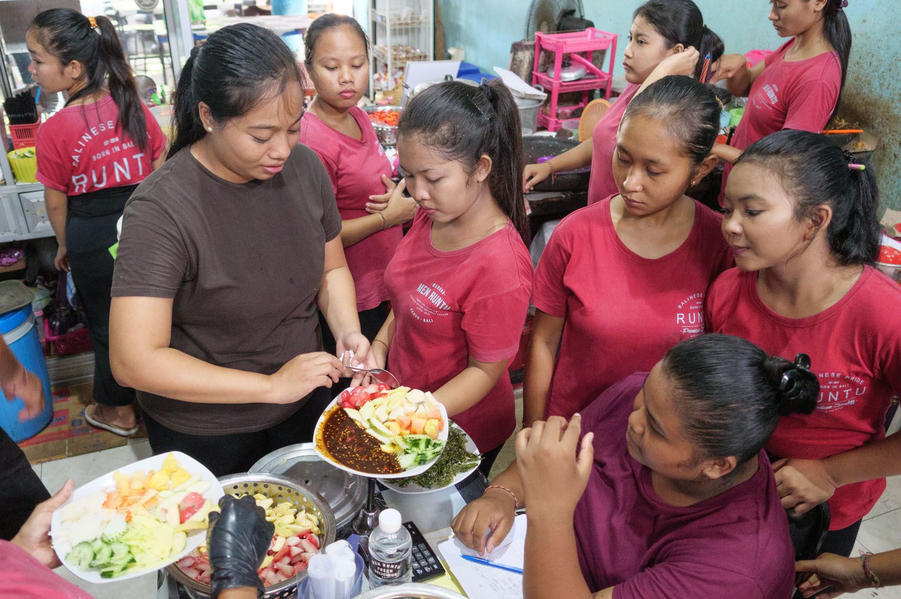 サヌールの裏街道沿いにある「ワルン・メン・ルントゥ」はおばあちゃんのレシピで作られたスナック料理が味わえる店。懐かしい味が現地のティーンエージャーたちに受けています。甘辛ソースで南国フルーツを味わうルジャッや、野菜とちまきのティパッ・チョントッなど名物料理を試してみましょう。