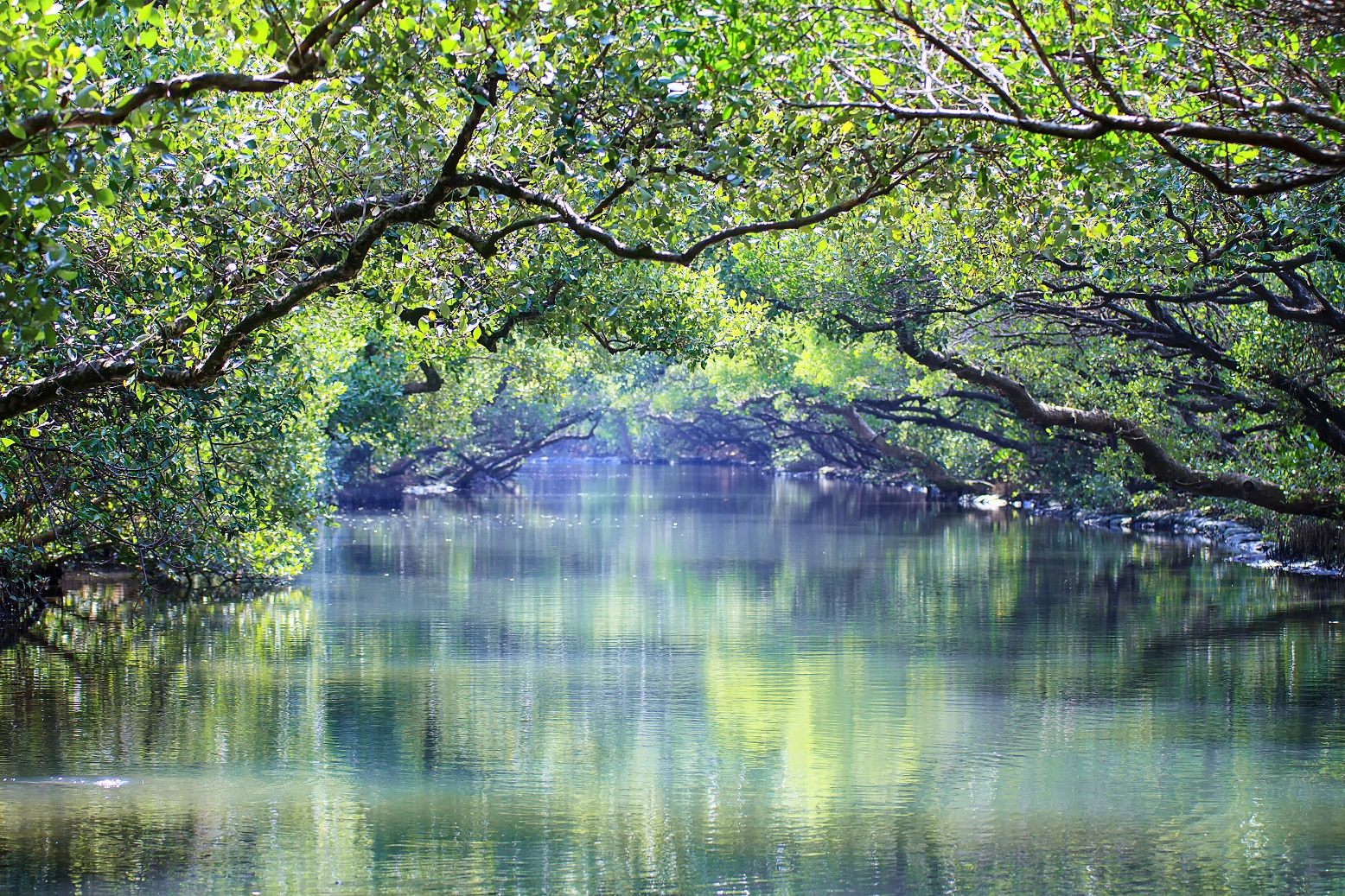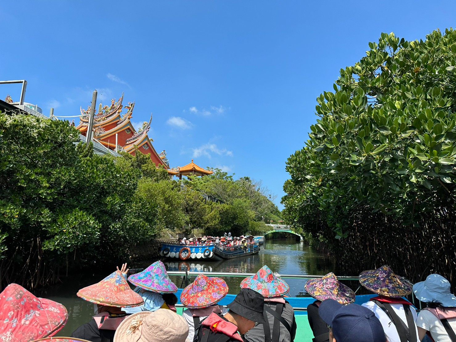 台南郊外の台江国家公園にある絶景スポットが、「四草緑色隧道」というマングローブが生い茂る全長約800メートルの水路。木漏れ日がキラキラ輝いて水面に反射し、美しい緑のトンネルを、30分のクルーズで探検。