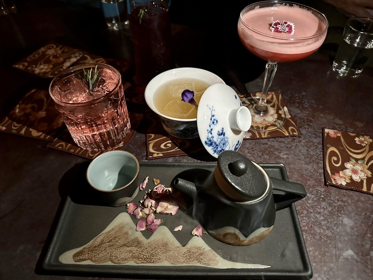ジンをベースに、地・水・火・風の四元素に基づくハーブやフルーツをミックスしたカクテルなど、「酒到病除」がコンセプトの薬局バーらしいメニューも。おしゃれなカクテルで台南の夜にカンパイ!
