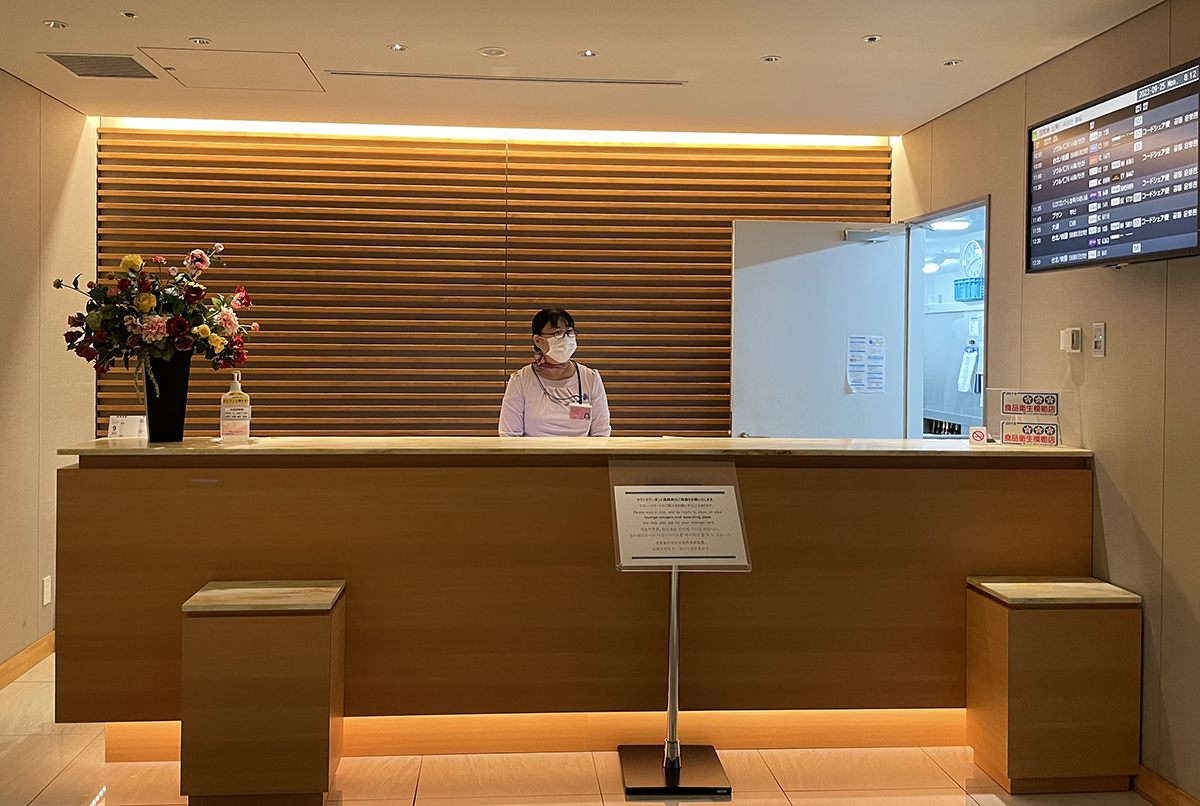 当日チェックイン時に搭乗チケットと共にラウンジ使用パスを受け取り、両方をラウンジ入口カウンターで提示するとことで入室できます。