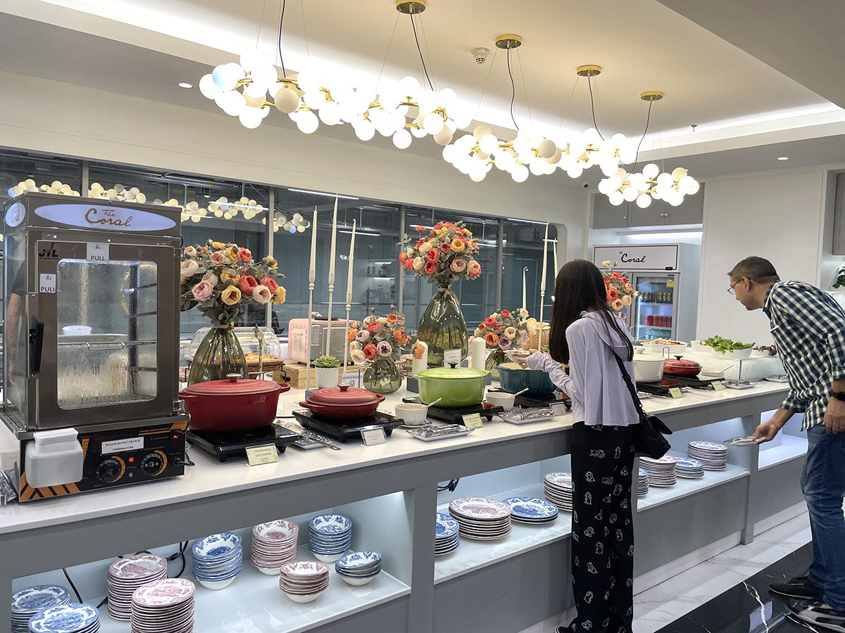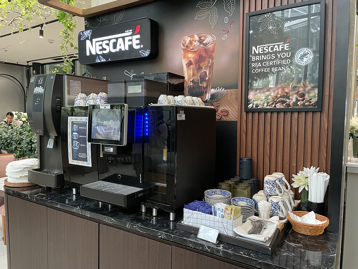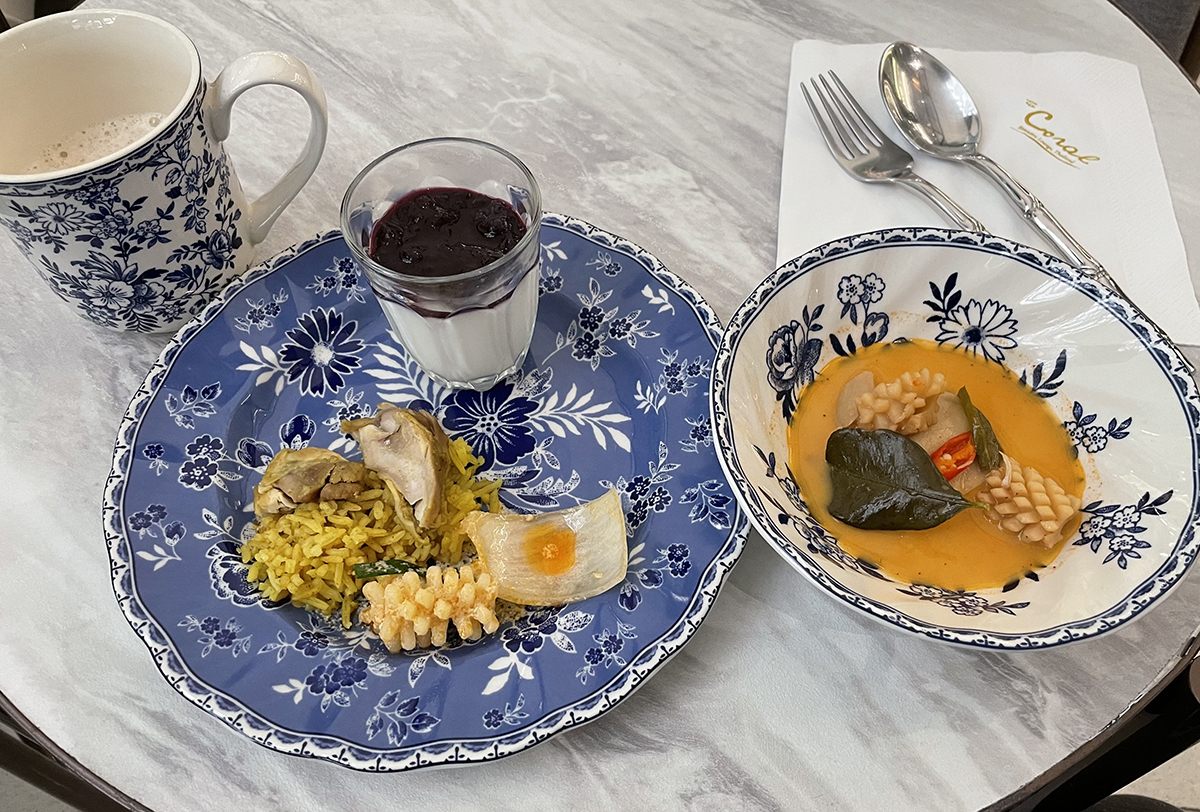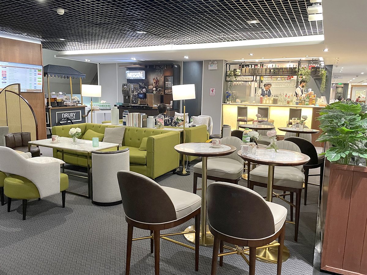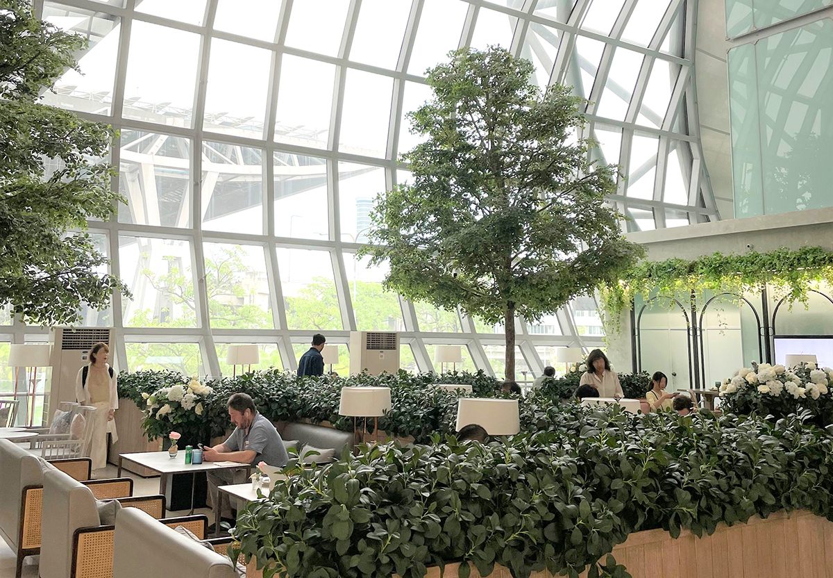ガラス張りの吹き抜けが気持ちのいい、まるでテラスカフェのような雰囲気。ドリンク類の充実はもちろんのこと、フードコーナーにはトムヤムクンやカレー、シーフードやチキンなどのタイ料理が並びます。バンコク到着後にすぐタイ料理が楽しめるなんて気分も上がります!