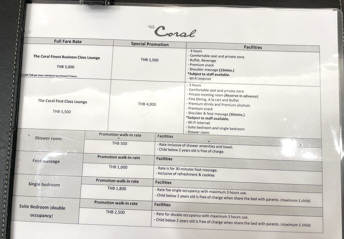 | 使用料 | 不要 | 航空券予約時にラウンジパスを追加購入(国内線890バーツ~、国際線1200バーツ~) |