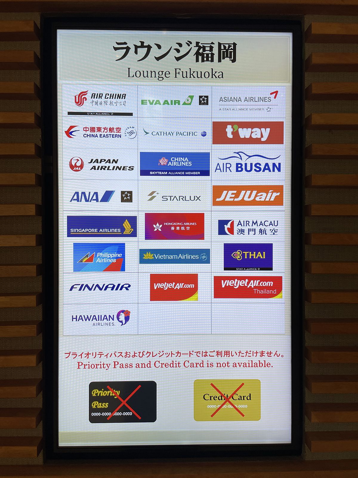 福岡国際空港内にはいくつかラウンジがありますが、ベトジェットSkyboss搭乗者が利用できるラウンジは、保安検査場を出て左手にある「ラウンジ福岡」です。入口に契約航空会社の案内があるので確認してから入室しましょう。