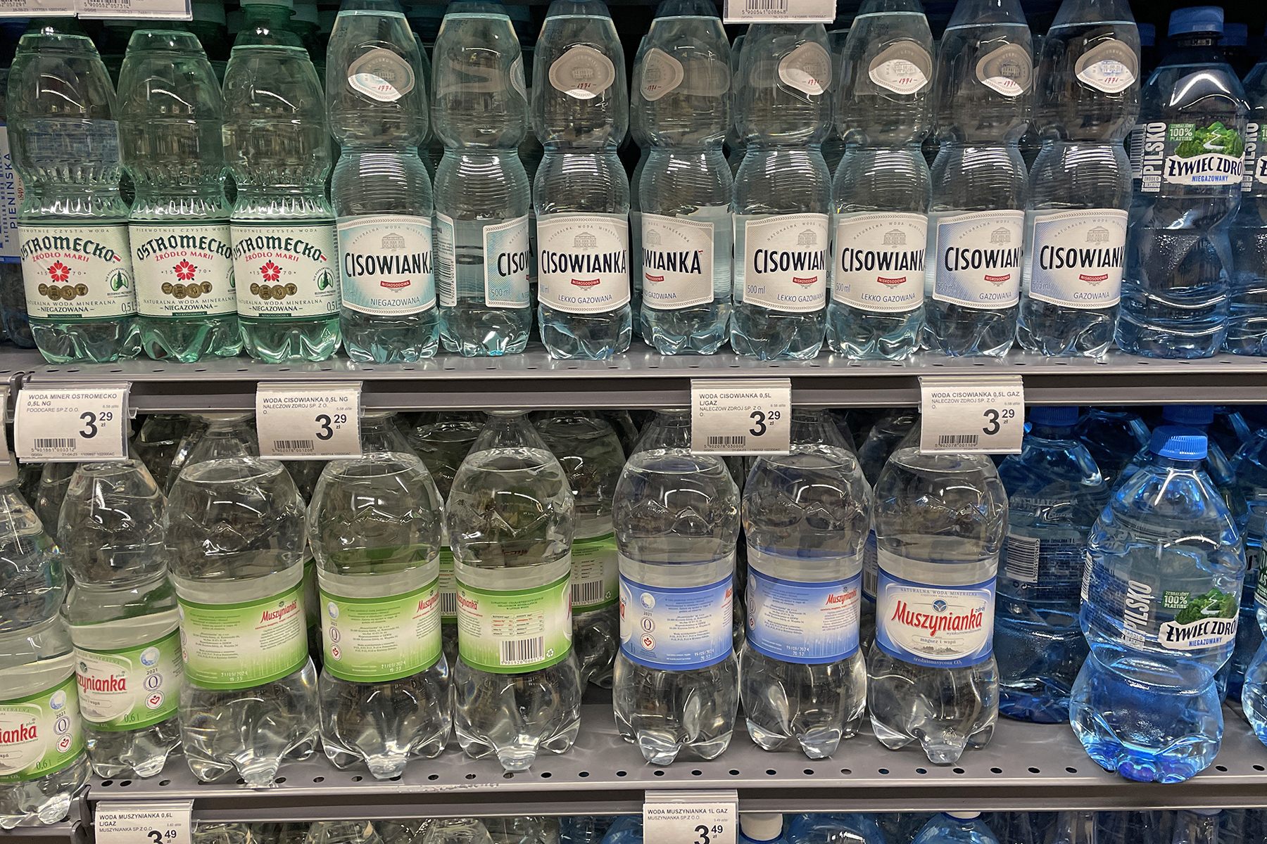 首都ワルシャワでホテル近くのスーパーをのぞくと、パンはクロワッサン2.99 PLN(約110円)、瓶ビール500mlが3.99 PLN(約148円)~、水は0.5リットル3.29 PLN (約122円)~、 1.5リットル3.99 PLN(約148円)~で売られていました。