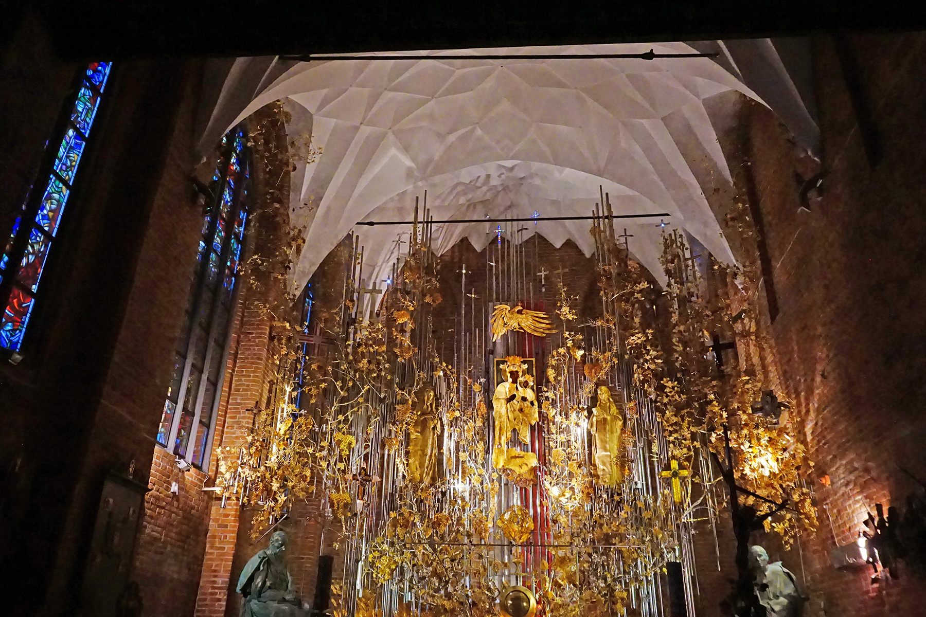 ゴシックやルネサンス、バロックなどの建築が美しく調和した街並みは、歩いているだけで楽しい気分に。もちろん、立ち寄りたい観光スポットも多数あります。おすすめは聖ブリギット教会。なんとここには、グダンスクの名産である琥珀の祭壇があるんです。アクセサリーに使われる琥珀ですが、パワーストーンとしての意味合いも強いのでしょう。あまりの荘厳さに息をのみます。ほかにレンガ造りの教会としては世界最大といわれる聖マリア教会なども見ものです。