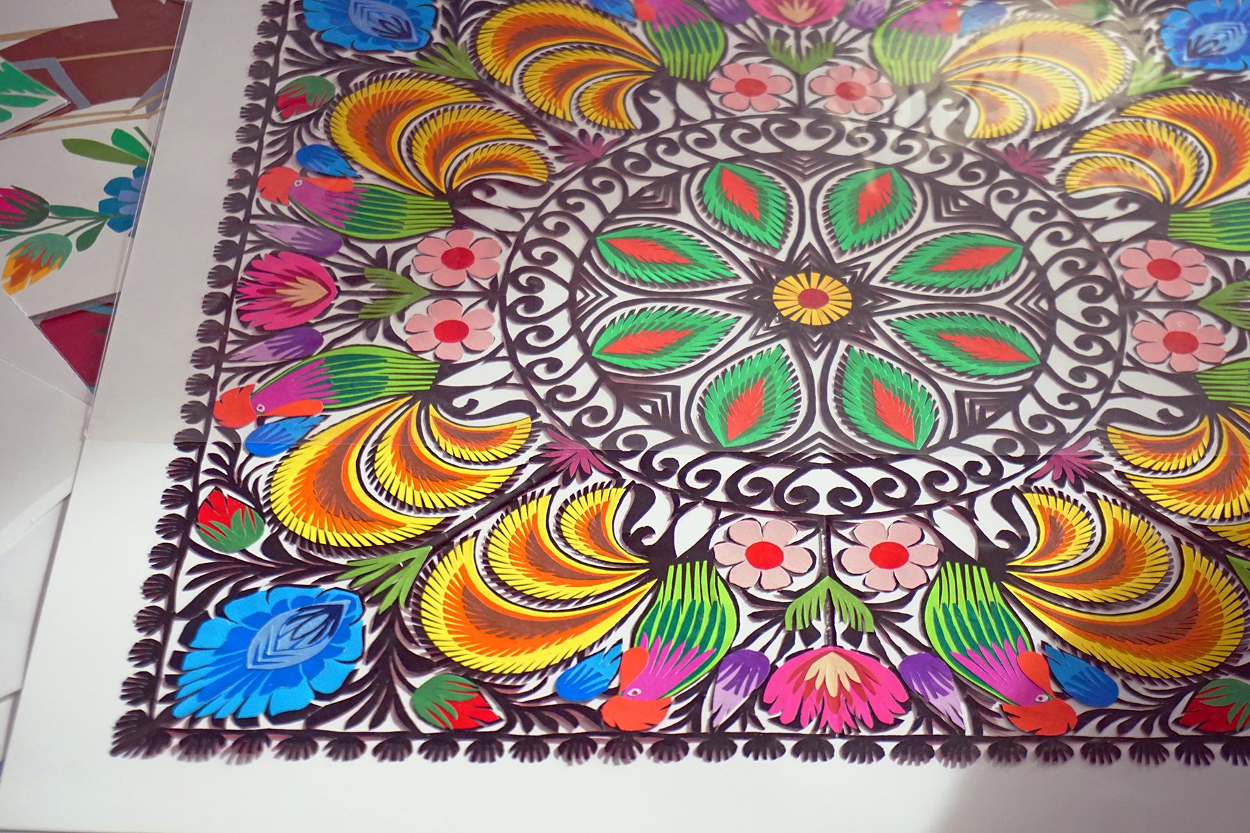 ポーランドのお土産の定番である切り絵は、ウォヴィチが発祥です。もともと女性たちが絵画代わりに部屋に飾ったり、レースのカーテン代わりに窓に飾ったりしていたそう。羊の毛を刈る飾りものとして大小さまざまな芸術的な切り絵を購入できます。