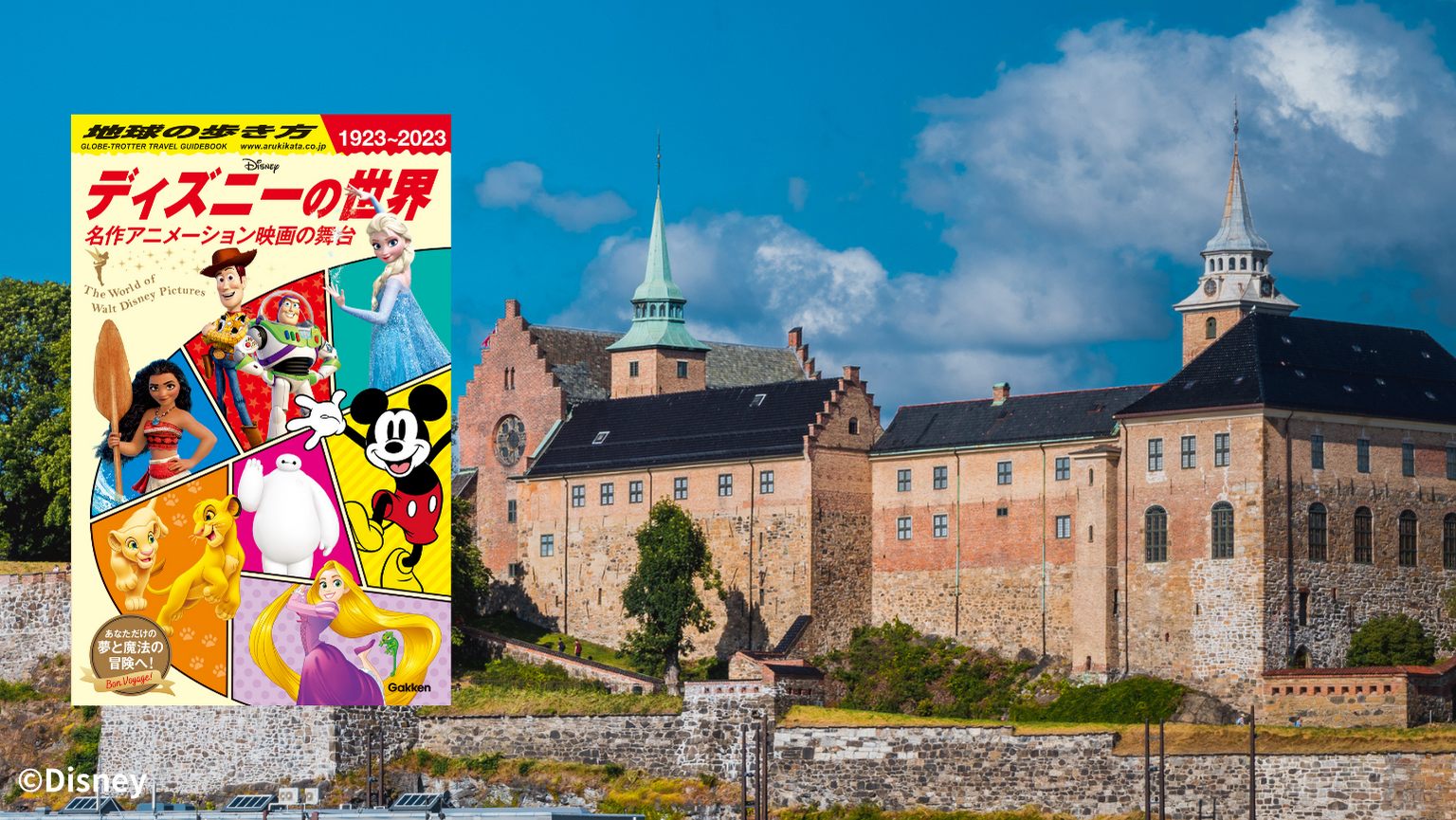 たとえば、主題歌「レット・イット・ゴー」とともに空前の大ヒットを記録した『アナと雪の女王』は、映画の製作チームがノルウェーに取材旅行に出かけ、現地のフィヨルドの地形や伝統的な建物から大きなインスピレーションを受けたといいます。エルサとアナが暮らすアレンデール王国は、ノルウェー第2の都市ベルゲンのブリッゲン地区の町並みや北部のロフォーテン諸島の美しい風景がまさに”アナ雪の世界”。エルサが戴冠式を行った教会やアナたちが雪の怪物に追われた断崖絶壁もフィヨルドの観光名所です。さらに、アレンデールのお城のモデルのひとつと言われる首都オスロのアーケシュフース城など、ノルウェー各地にある必見ポイントを多数紹介しています。