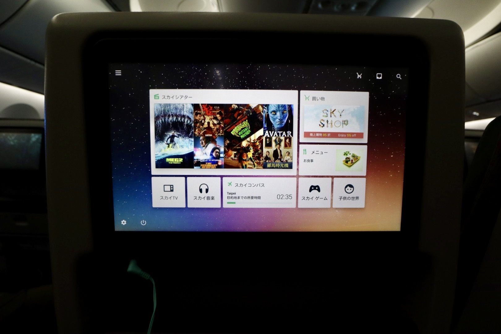今回、筆者は羽田空港と台北の松山空港との往復便を利用しました。フライト時間は往路が約4時間程度、復路が約3時間と短かったのですが、各座席にモニターが付いており、映画や音楽、TV番組など機内エンタメも充実しているのでもう少し長く搭乗していたいほど。座席も広々としていて窮屈さを感じさせません。