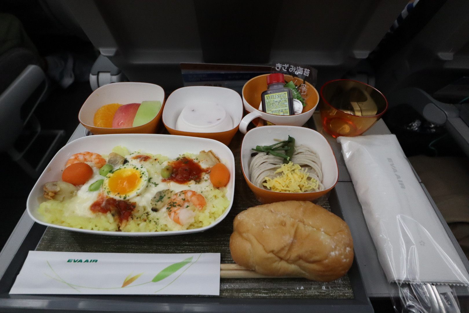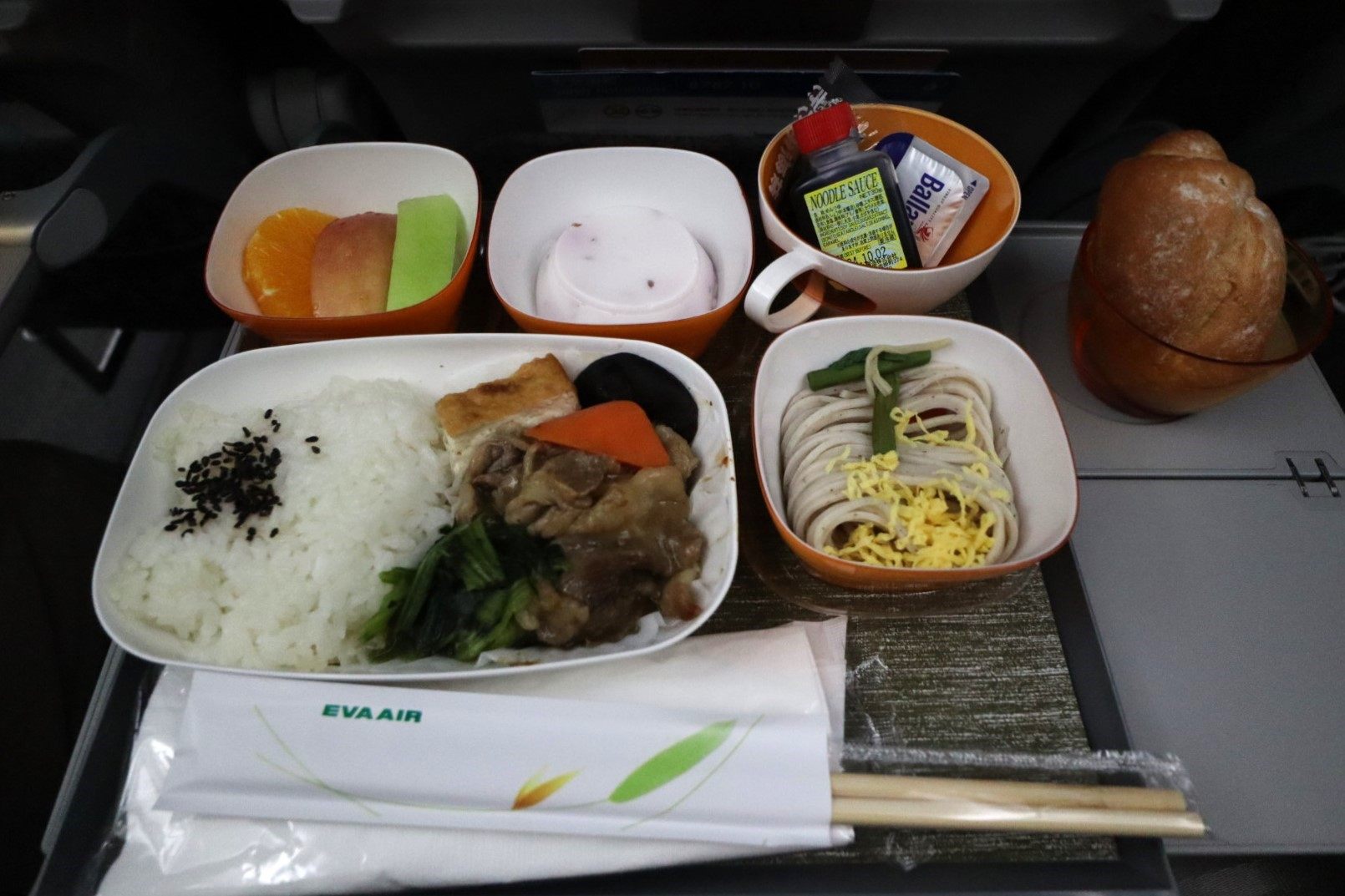 エバー航空では、台湾行きの短いフライトでもしっかりとした機内食がついてきます。