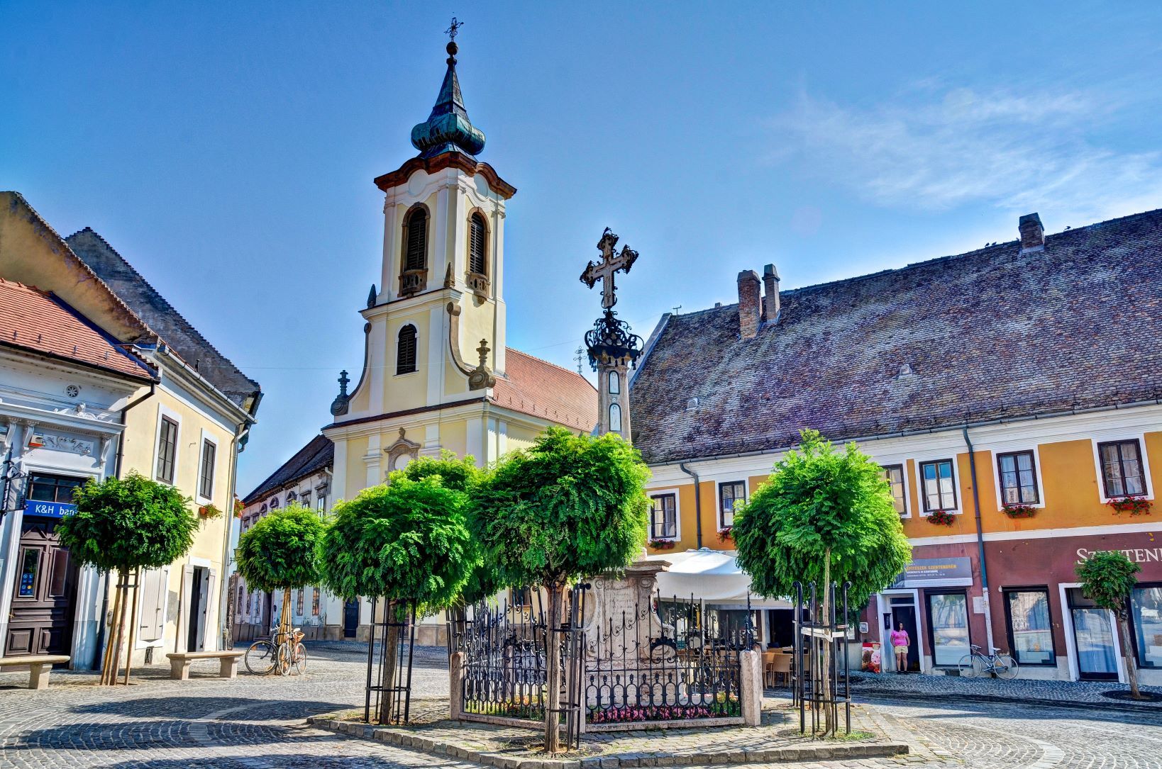 ブダペストから北へ約19㎞に位置するセンテンドレは、石畳の路地にカラフルな建物が軒を連ね、おとぎ話の世界へ迷い込んでしまったかのような光景が人気の小さな街。15世紀にオスマン帝国の支配から逃れてきたセルビア人によって栄えた街で、セルビア文化が色濃く感じられます。また、かつて芸術家たちのコロニーがあり、今も多くの美術館やギャラリーが点在していることから“芸術の街”としても知られています。