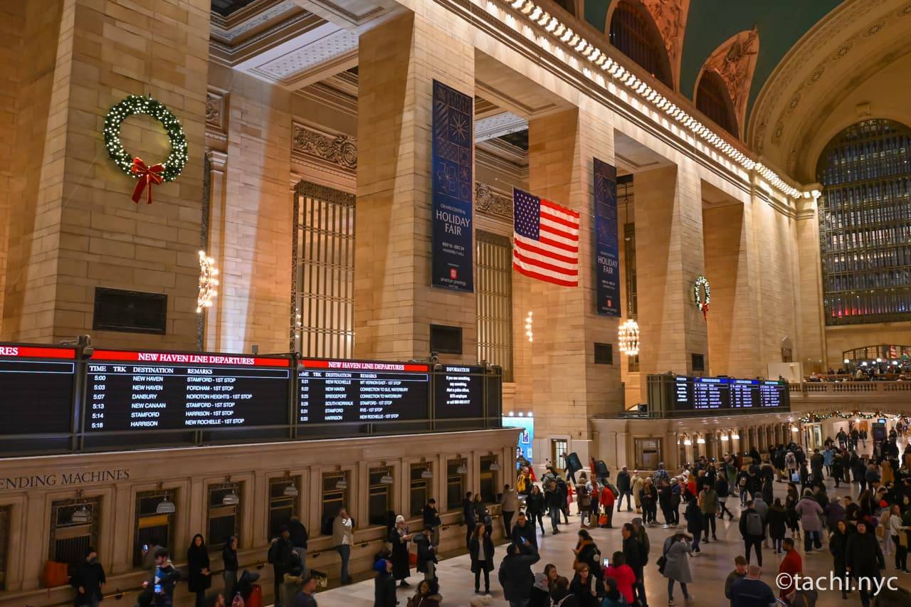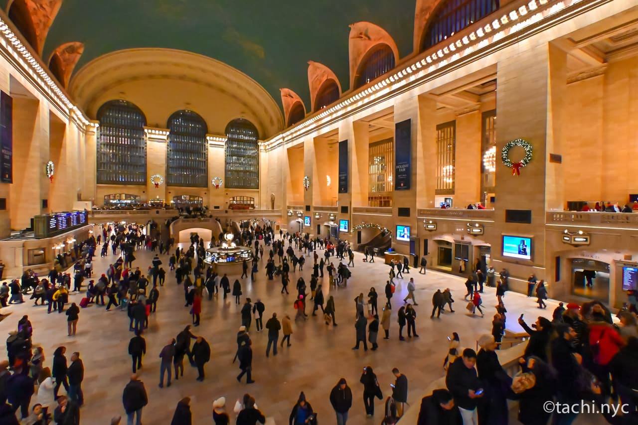 ニューヨーク旅行でおすすめしたい名所のひとつが、「グランド・セントラル・ターミナル」。ニューヨーク郊外とマンハッタンをつなぐメトロノース鉄道、ニューヨーク市内を網羅する地下鉄やバスなど国内最大級の交通拠点です。大理石がふんだんに使われたボザール様式の駅は、単なる交通機関としての役目だけでなく、非の打ちどころがないほど美しいのです。多くの人が集まっているにも関わらず、ざわめきがささやくように静かなのは、天井が高いせいかもしれません。大理石の階段からコンコース(中央ホール)における人の流れを眺めたり、天井の星座を見上げたりしていると、不思議と心が鎮まっていきます。ちょっと疲れちゃったなというときに、訪れたくなる場所なのです。今回はそんなグランド・セントラル・ターミナルについて、歴史や見どころを紹介します。