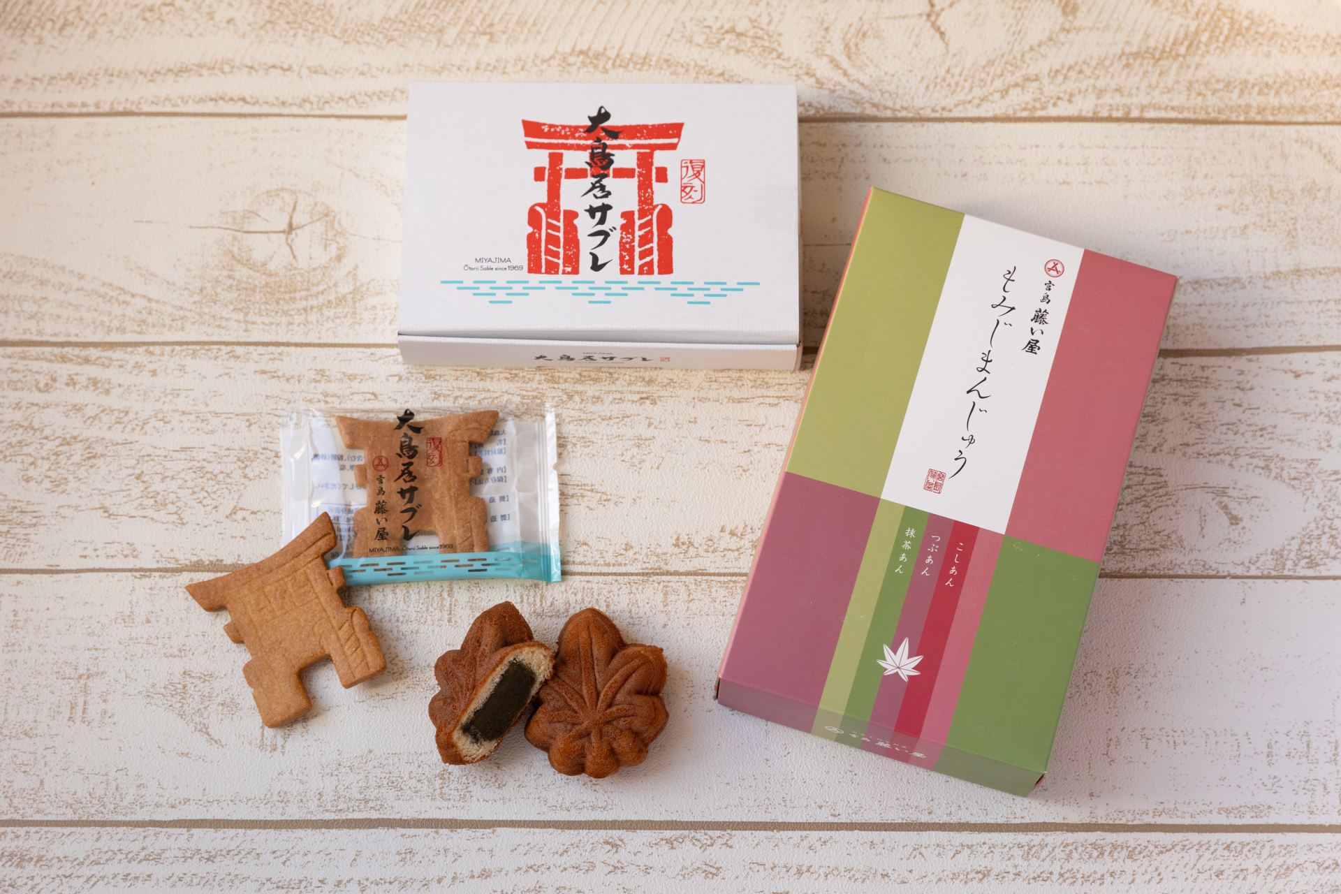 商店街では広島みやげもチェックしてみましょう。宮島杓子や宮島彫りなどの民芸品・工芸品のほか、宮島発祥の「もみじまんじゅう」店や焼き牡蠣&生牡蠣がいただける専門店などが軒を連ねます。近年、もみじまんじゅうは王道のあんこが入ったタイプだけではなく、進化系も登場!クロワッサン、アイスクリームがサンドされたもの、パイ生地を使ったものまで……本当にさまざまな種類があるんですよ。気になったものを少しずつ食べ歩きしてみるというのもおすすめです。