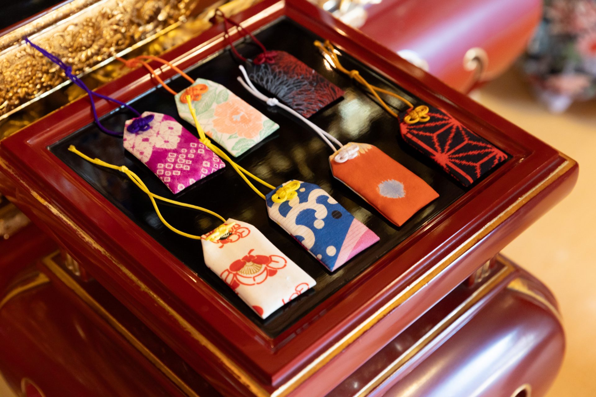 「カップルで来て、作ったものを交換するなんて方もいらっしゃるんですよ」と話してくれたのはokeiko japan代表の橋口さん。着物をリメイクして作ったお守りは、過去に広島そごうの物産展などでも販売し、好評を得ているのだといいます。もともと徳寿寺では、地元の子供たちが通う寺子屋や茶道教室を開催するなど、地域に密着しながら幅広い人々に門戸を開いていたお寺だったそう。橋口さんが受け継いでからも、徳寿寺の精神性が引き継がれているのも素敵な点ですね。