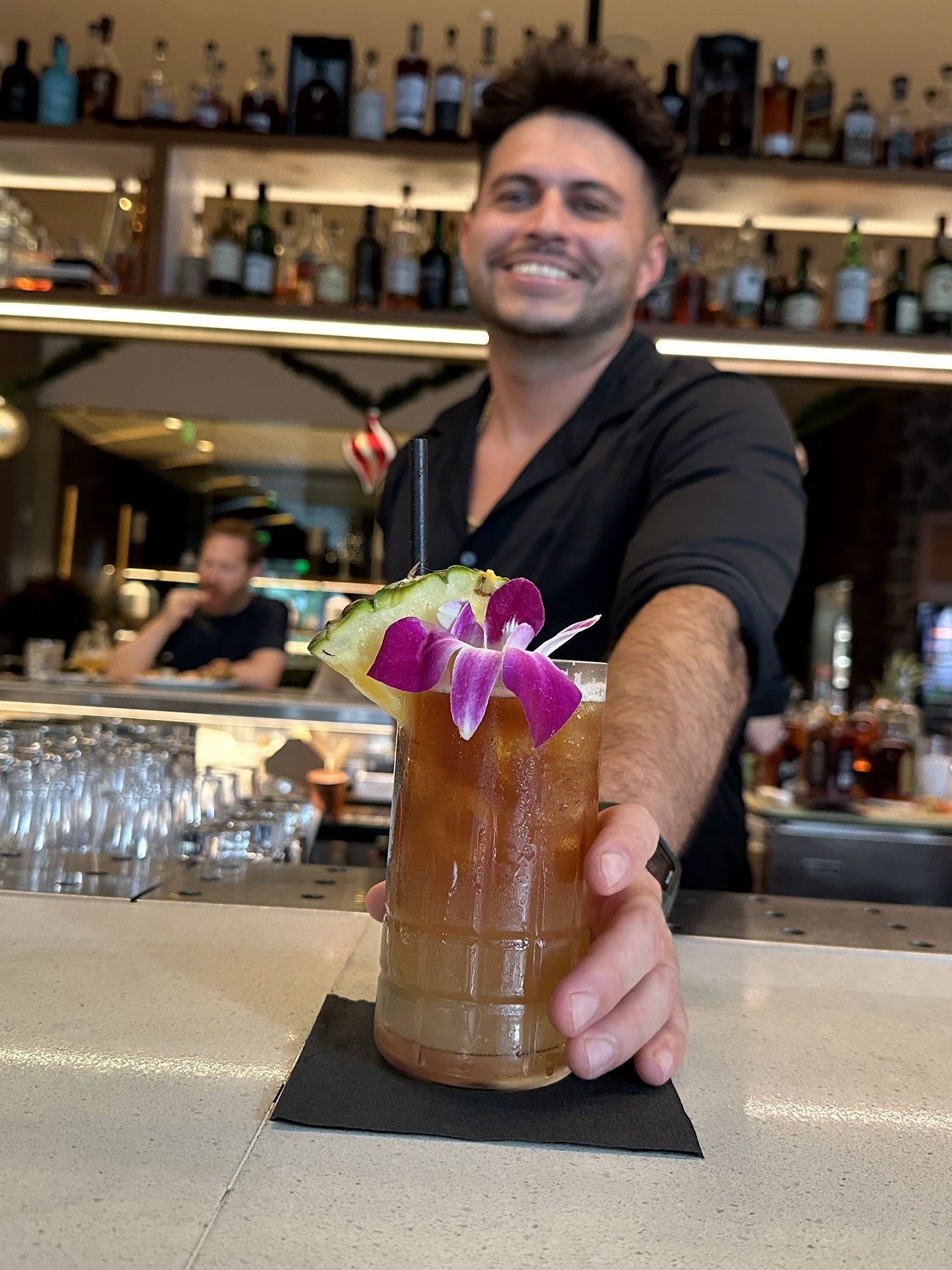 モクテル(ノンアルコール)もリクエスト可能(15ドル)。色合いがすてきなドリンクにテンションもあがります。