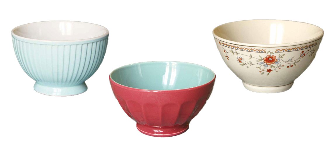朝食タイムにこんなボウルがあれば、毎日パリ気分を味わえるはず。蚤の市で見つけたアンティークのボウルをインテリアに使っても。