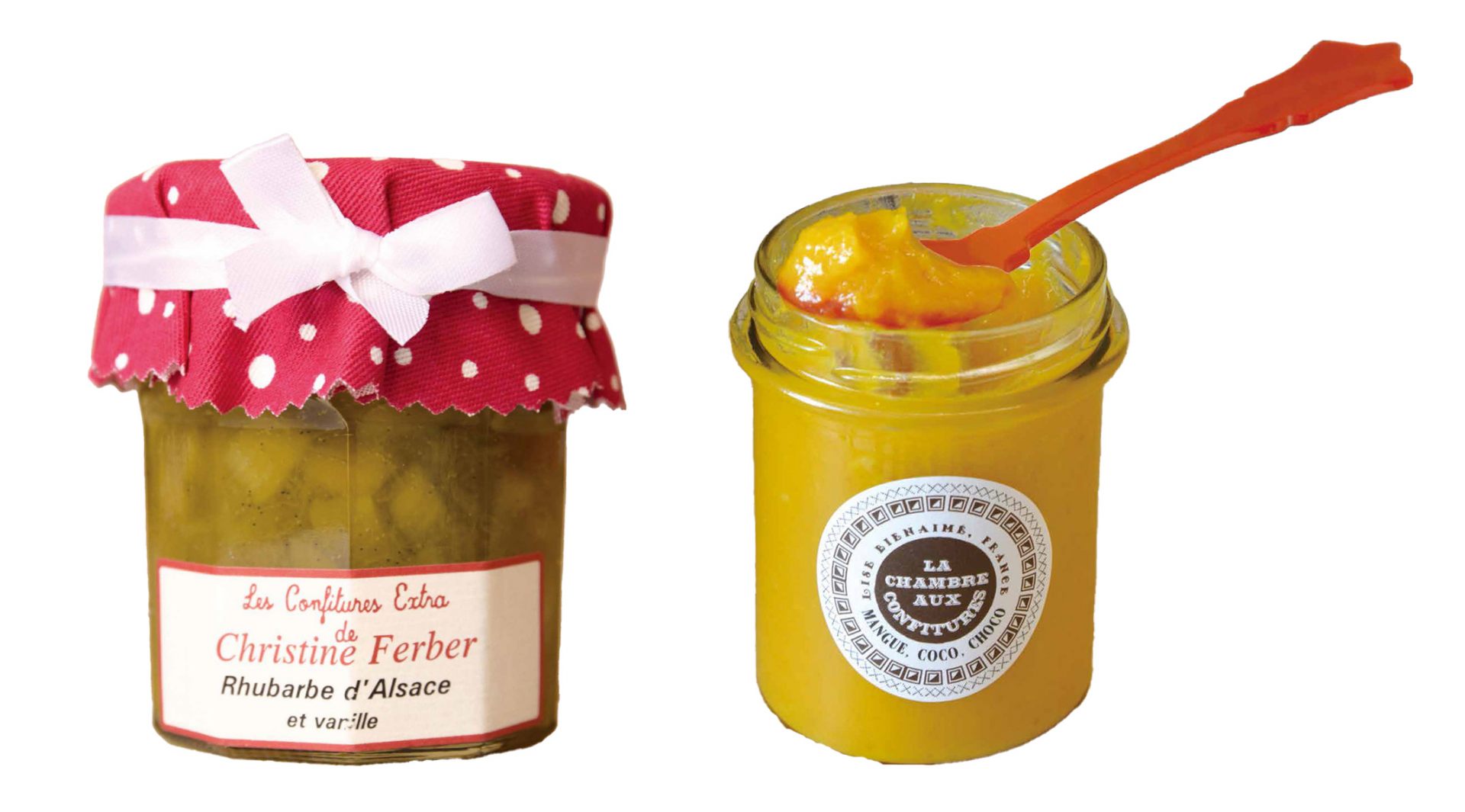 ジャムの専門店もあり、素材の組み合わせを楽しめる。「ジャムの妖精」と呼ばれるフェルベールさんのジャムは水玉のカバーが目印。ラ・グランド・エピスリー・ド・パリなどの食料品売り場で購入できる。