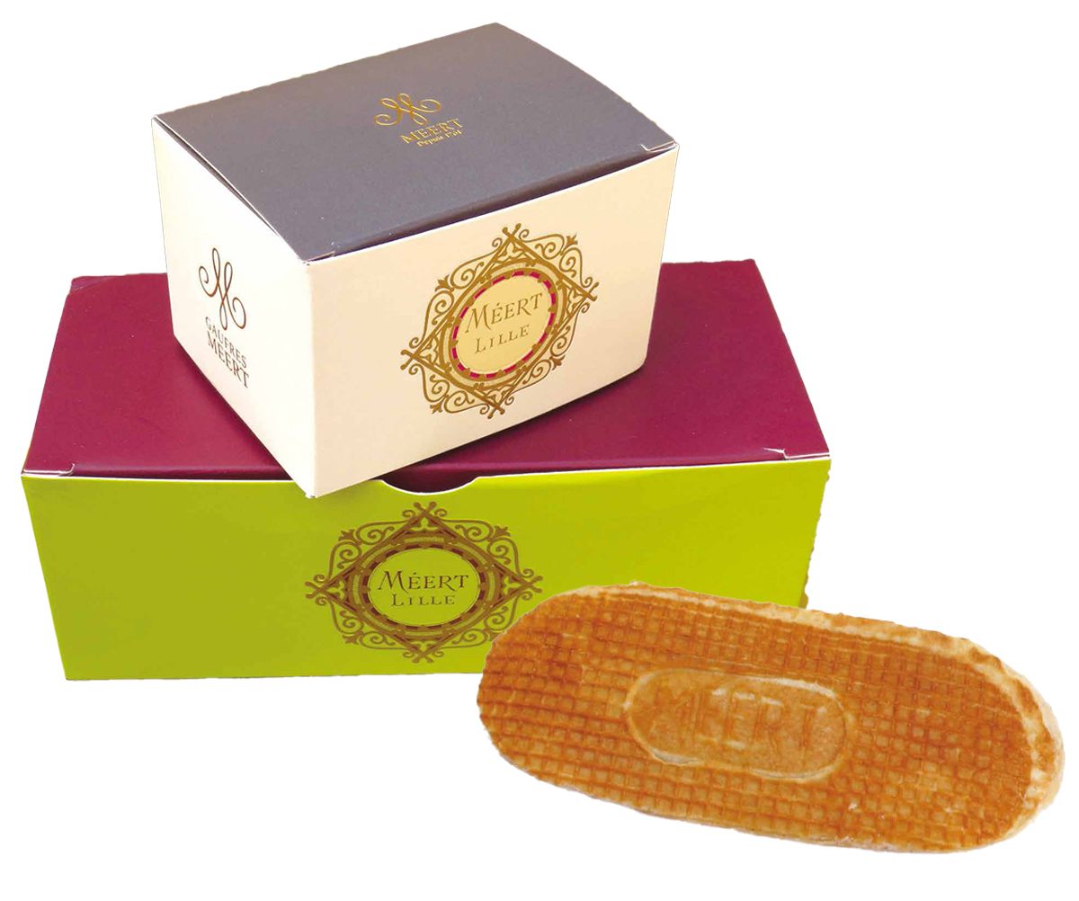 伝統の焼き型で焼いた生地でバニラクリームを挟んだゴーフル。生地のもっちり感と風味豊かなクリームはやみつきに。