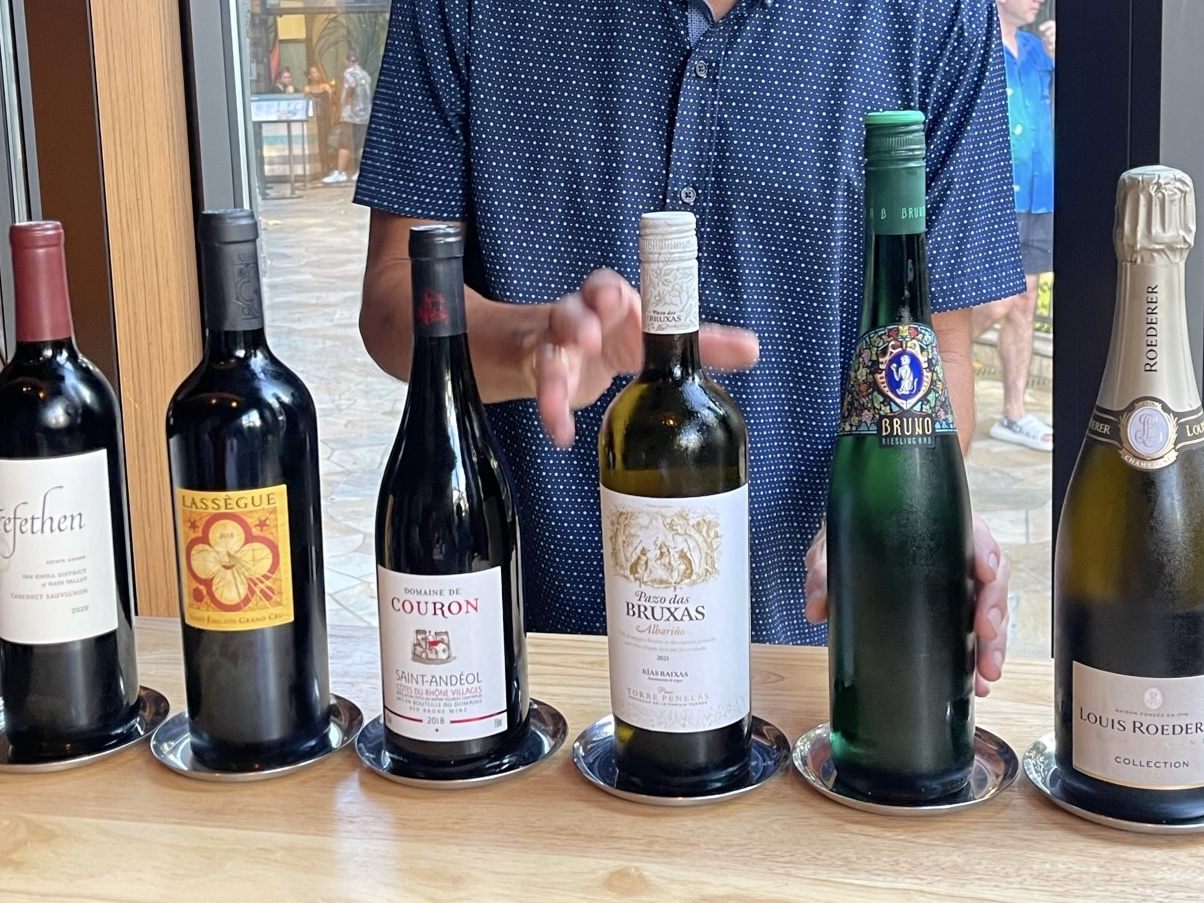「料理とワイン、それぞれにカラーがあるので、僕はその色を合わせていくんです」とほほ笑むソムリエの方。 ワインだけでもマリアージュでも、おいしく楽しめるバランスの取れたワインの数々。産地や品種がバラエティに富んでいて好奇心を満たしてくれるので、会話も盛り上がります。