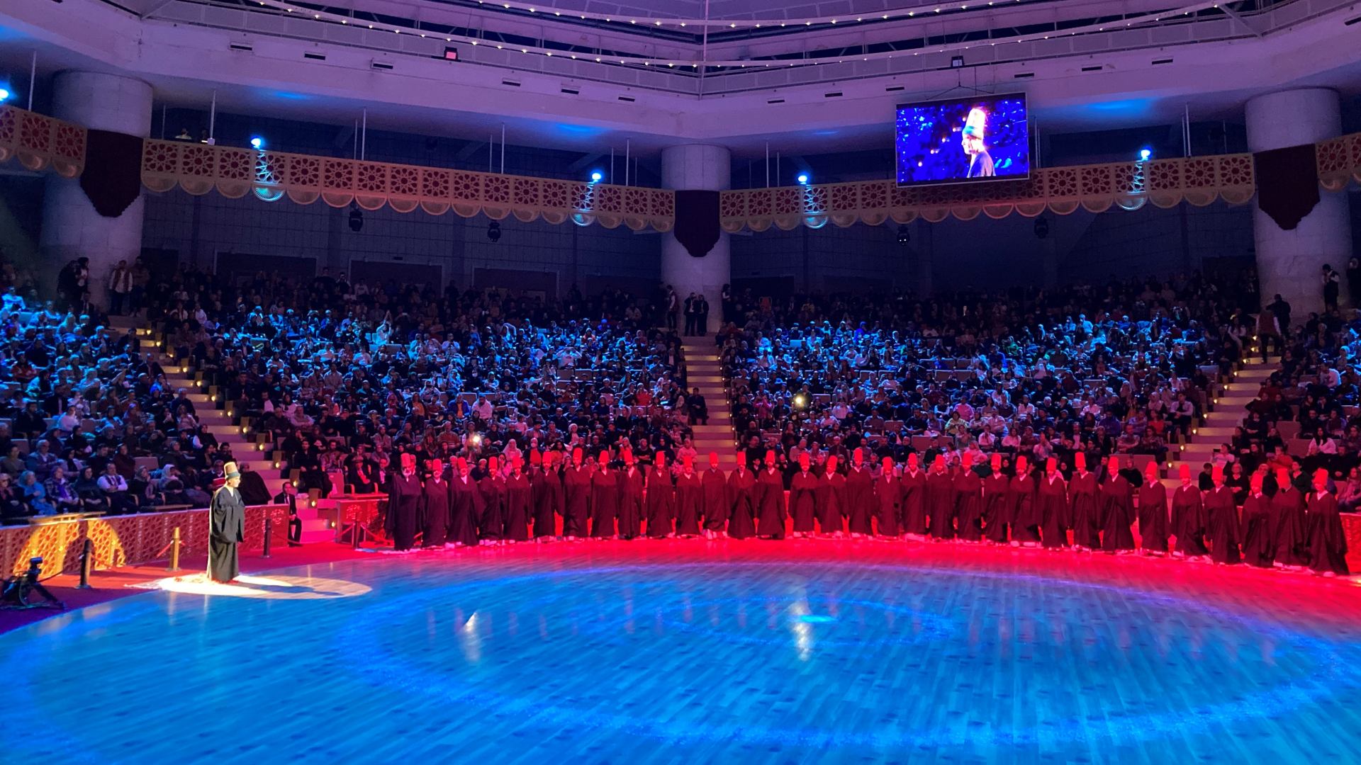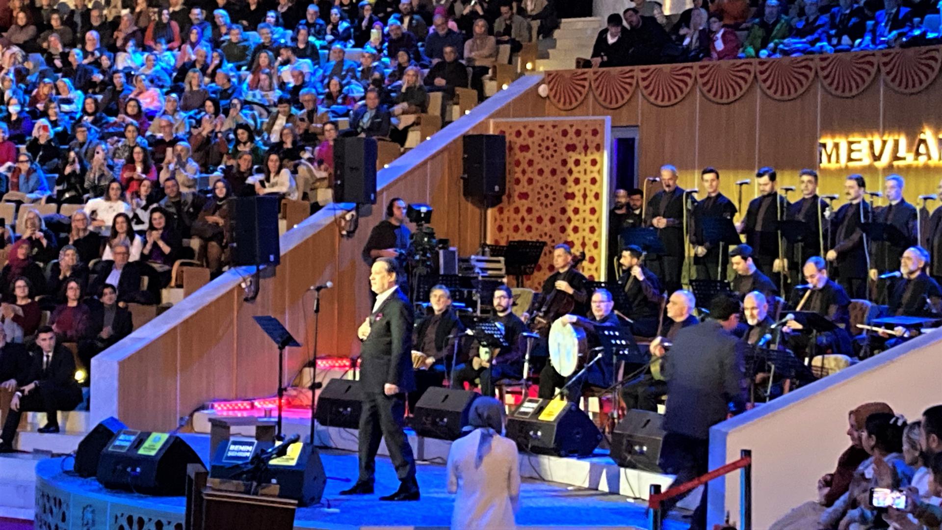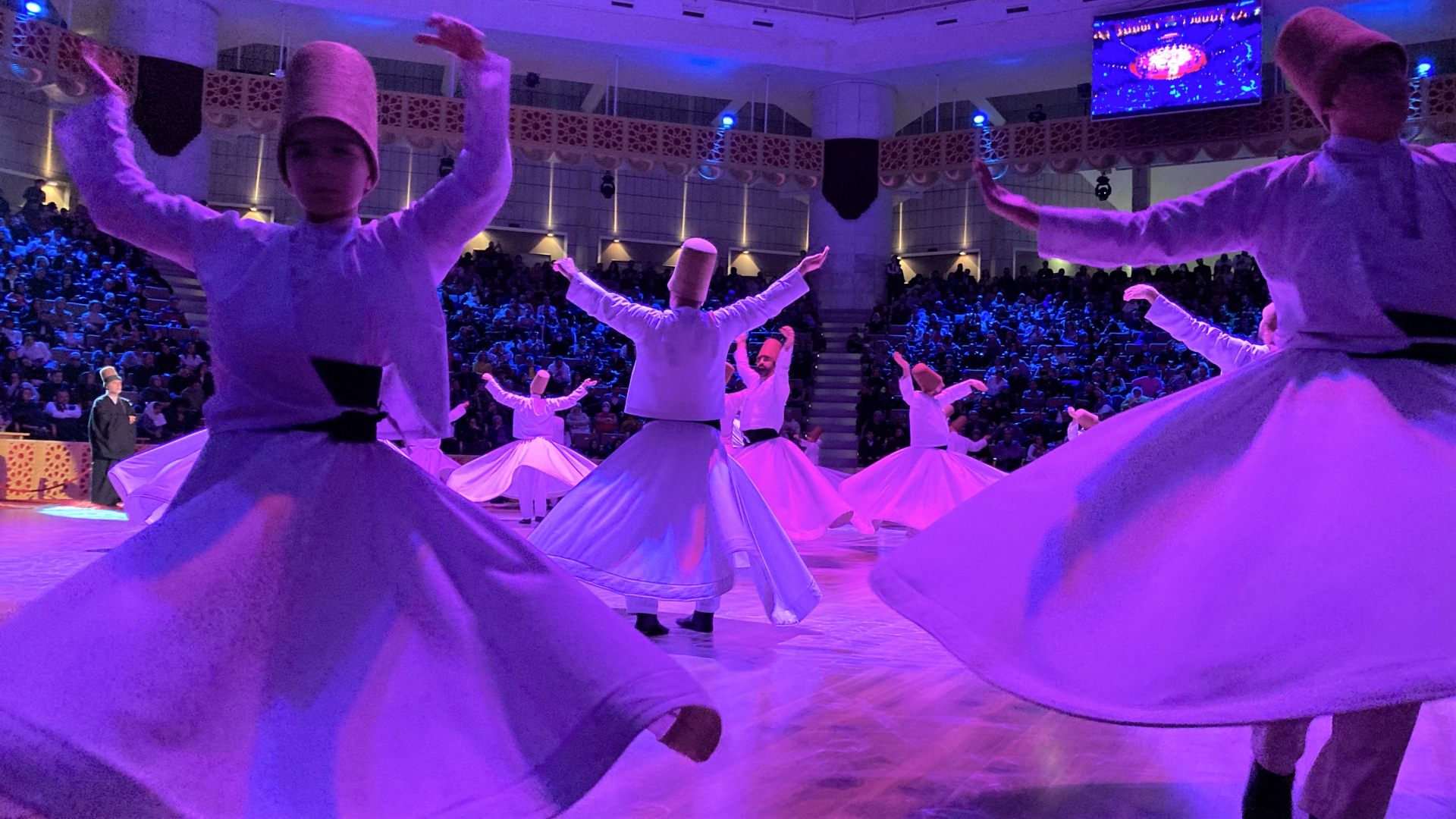 今回、筆者は2023年12月17日、メヴラーナが亡くなって750回目の命日である特別な日にセマーを見に行くことができました。場所はコンヤ市内のメヴラーナ文化センター。開演時間が近づくにつれ、人がどんどん集まってきます。特別な日だからか、開演前から厳かな雰囲気が漂っていました。