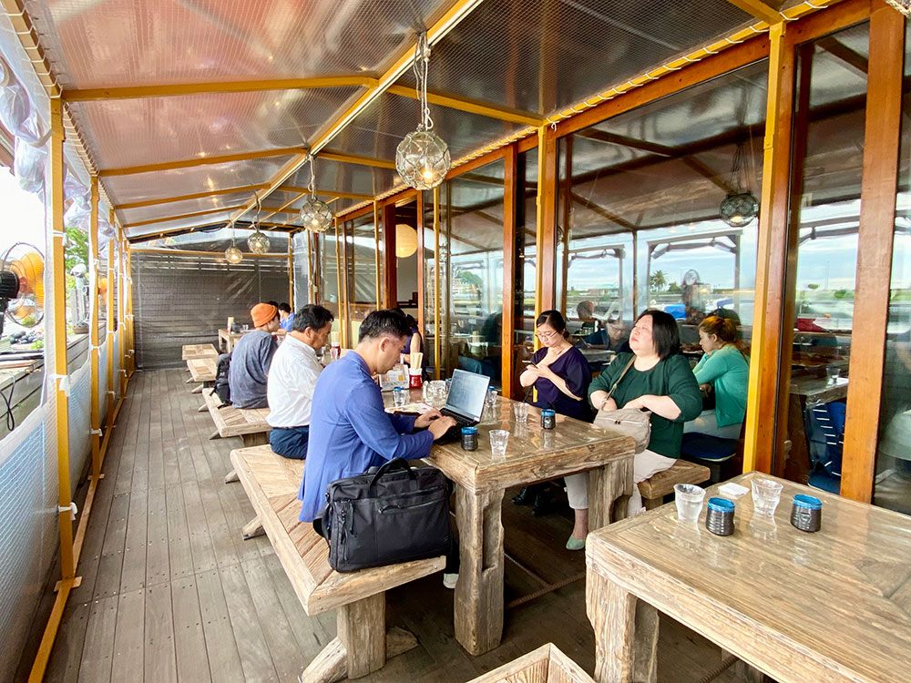 江の島周辺で最も人気のご飯スポットいえば「江ノ島小屋」。休日は行列ができるほどの大盛況ぶりですが、平日朝の時間帯は比較的空いていて狙い目です。8:00~10:30は朝食メニューを用意。煮魚の煮汁と目の前で削った半生のかつお節がたっぷりのった「金目鯛の煮汁卵かけご飯」はボリューム満点の一品。また、骨ごと魚を煮込んだ濃厚スープと刺身、魚のフリット付き「漁師汁定食」も江の島ならではの定食です。