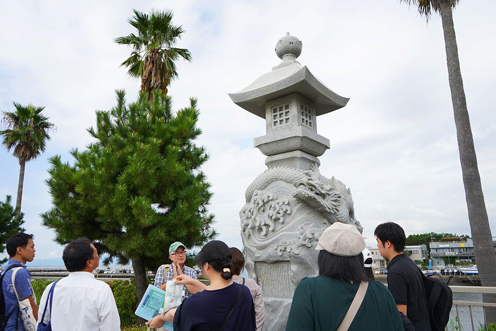 1日目に訪れたのは旧東海道 藤沢宿に位置する「藤沢市ふじさわ宿交流館」を出発して、白旗神社を目指すルート。ふじさわ宿交流館周辺は浮世絵にも多く描かれた場所で、江戸時代の姿と現代を比較することができ、歴史を感じられるエリアです。遊行寺橋周辺には、藤沢宿高札場跡があり、江戸時代には公定運賃やキリシタン禁止令などの法令が掲示されていたといいます。また、ふじさわ宿交流館から白幡神社に歩く途中にある「義経首洗井戸」には、奥州で自害し、浜に捨てられた源義経の首がこの地で拾われ、井戸で清められたという言い伝えも。ガイドツアーのゴールとなる白旗神社には、源義経公鎮霊碑が鎮座しており、こちらも必訪です。