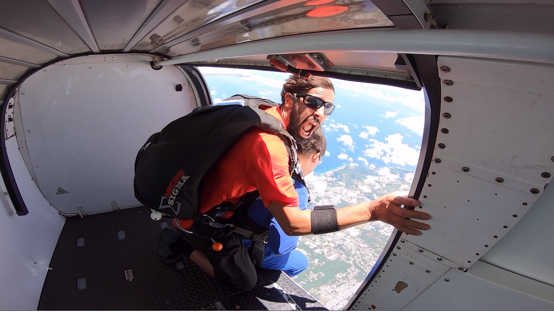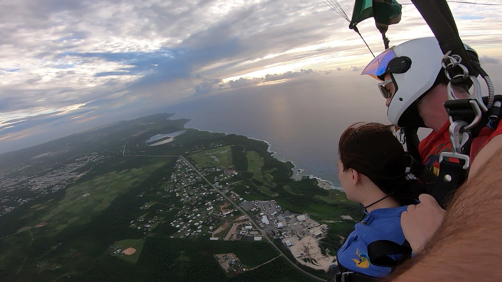 それが終わるとジャンプスーツに着替えてハーネスを着用し飛行機へ。飛行機が空高く上昇し、一定の高度に達したらいよいよ!インストラクターと一緒にグアムの空にジャンプ!