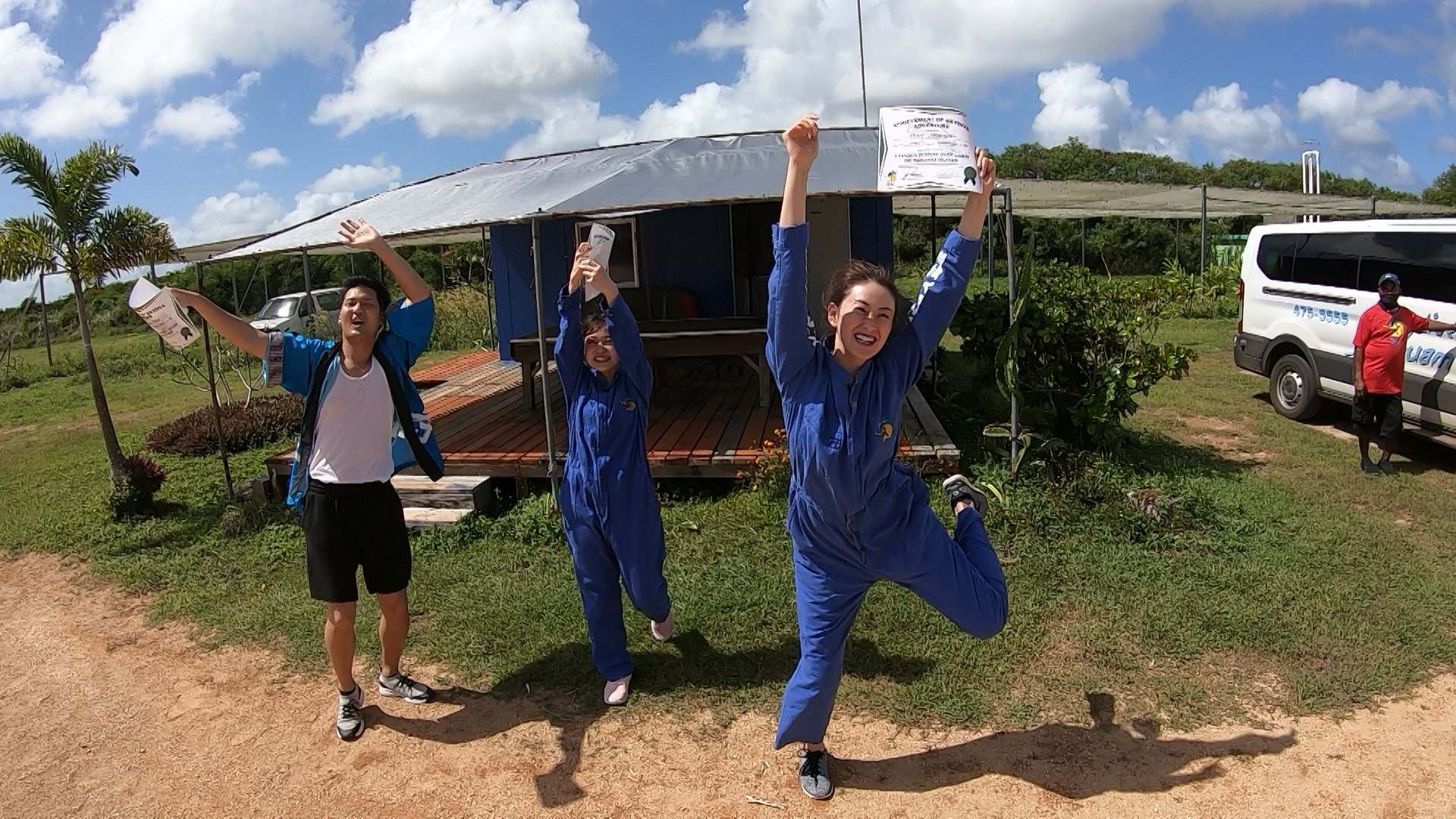 着地後に一緒に空を飛んだ担当のタンデムインストラクターから手渡しされる証明書は、グアムでスカイダイビングを体験したという証。何よりのグアム土産になるはずです。