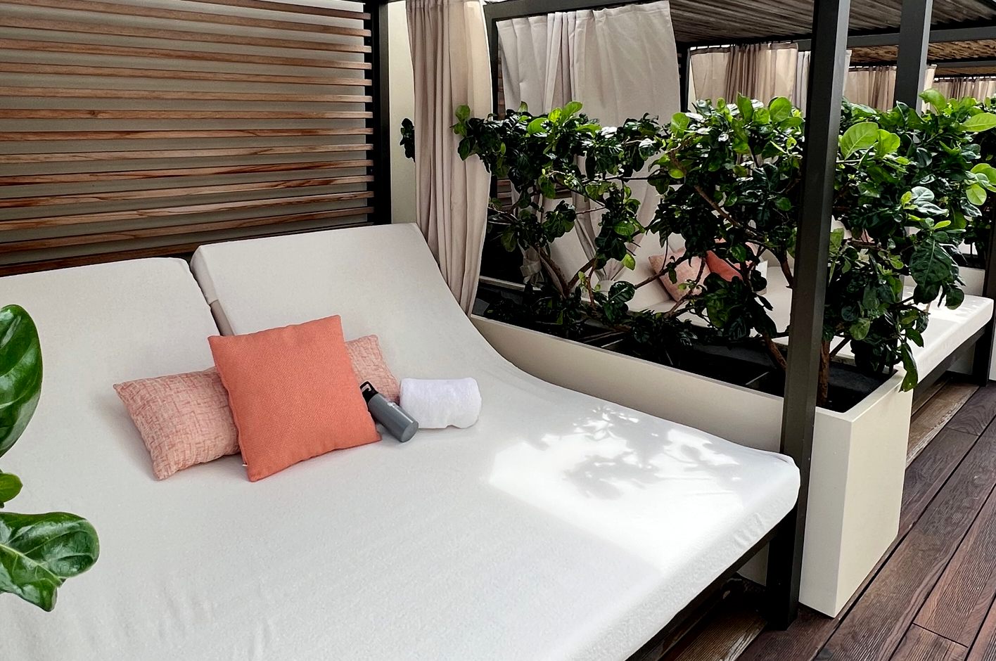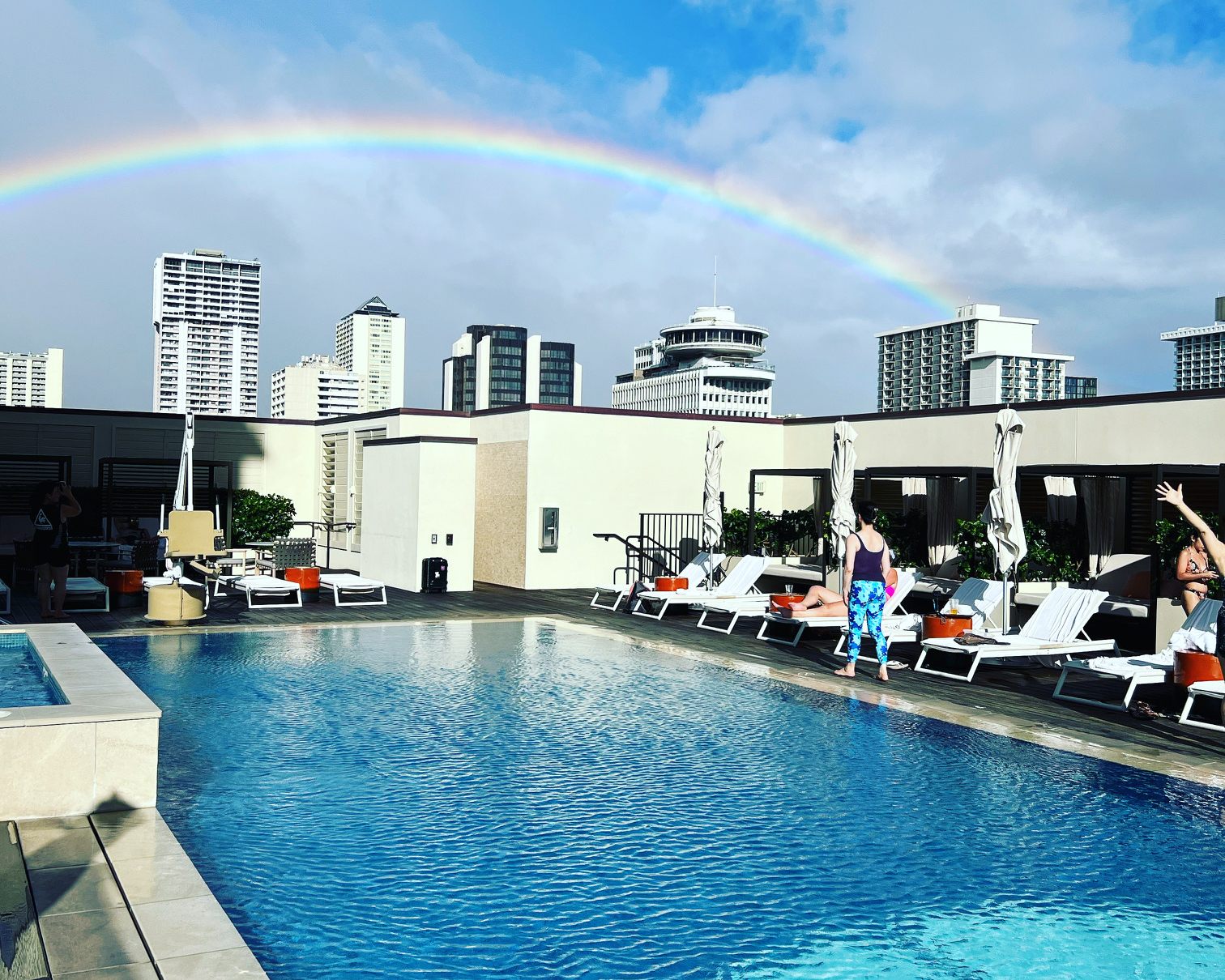 ワイキキビーチを一望できるプールがあるのが8階。海へとそのまま飛び込めそうなインフィニティプールの水底で、ゆらゆらと揺れるホテルのロゴが印象的。サンデッキで日焼けして身体がほてってきたら、プールバーから冷たいカクテルをオーダーして喉を潤せます。また、プールサイドのカバナは半日、または1日単位でレンタルでき、料金にカクテル代が含まれているのでお得。「スパハレクラニ」のセラピストによるトリートメントをリクエストするのもいいですね(事前予約制)。