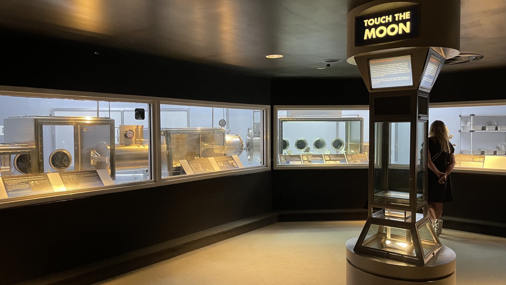 そしてこの月の欠片、一般の人が触ることができる世界で8つしかない欠片のひとつで38億年前のものだそうです。アポロ時代に持ち帰られた石を調べるための研究設備が展示されている中央にある月の欠片。そんな欠片に触れながら、宇宙のロマンを感じてみては?