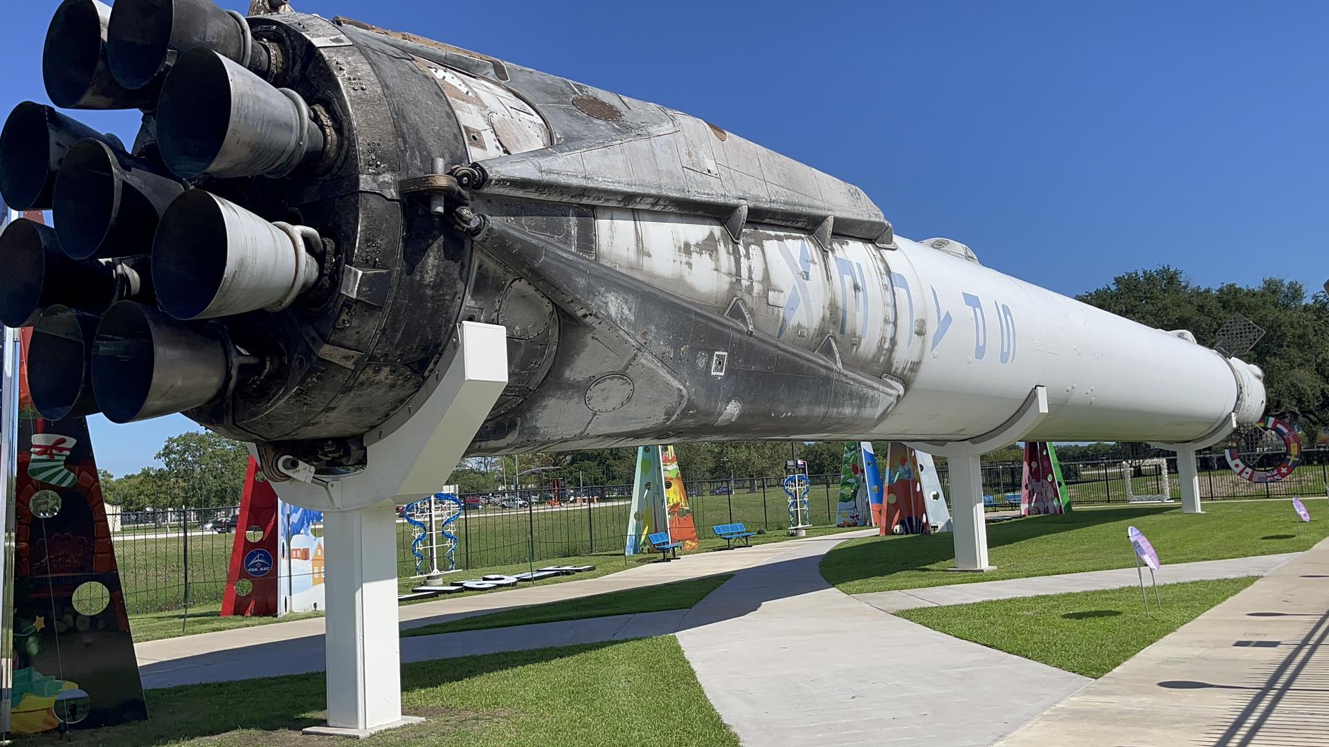スペースセンター・ヒューストンには2024年6月現在、国際宇宙ステーションへ宇宙飛行士や物資を送り届けるために使われているスペースX社のファルコン9ロケットの実物が展示されています。