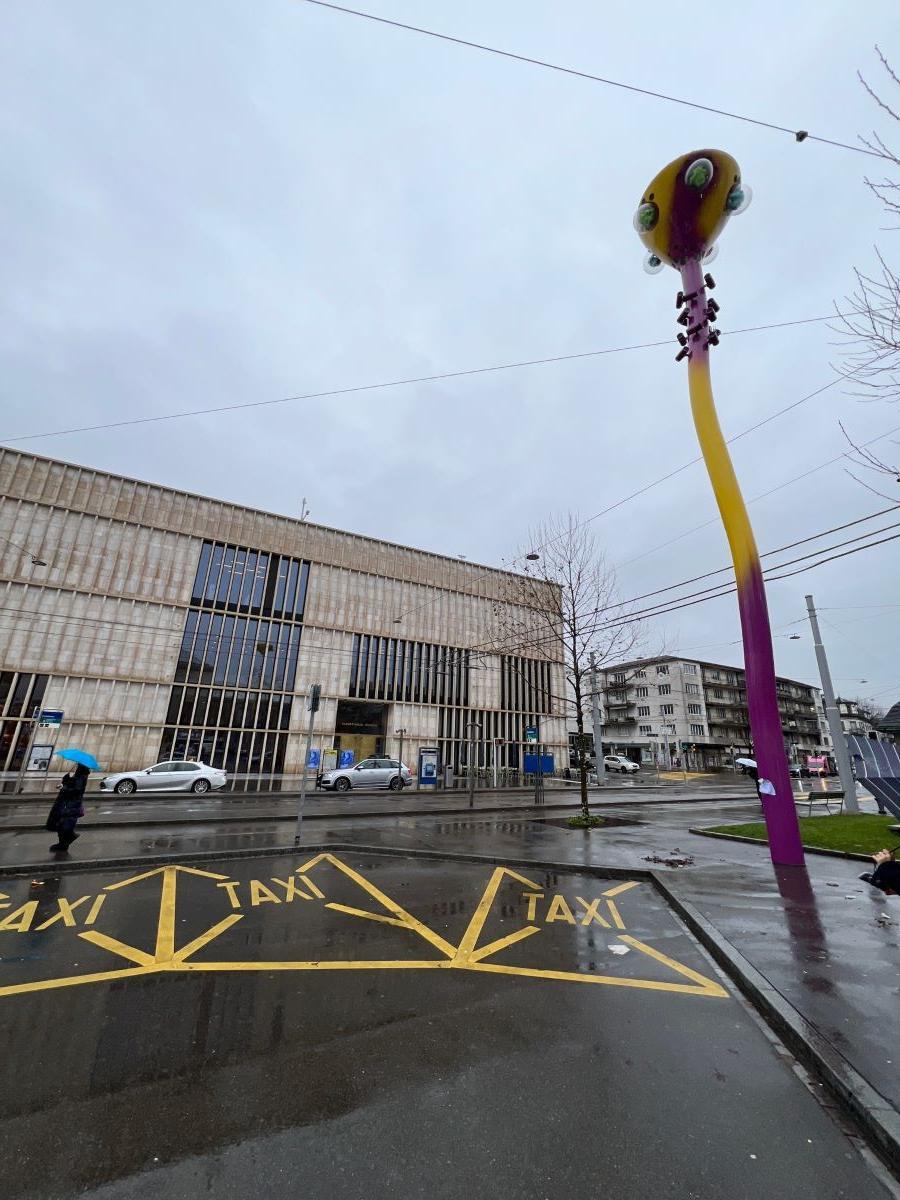 チューリッヒ中央駅からKlusplatz行きのトラムにのり、クンストハウス駅で降ります。下りた電車の進行方向左側と道を挟んだ向かいにある建物(別館)の両方がチューリッヒ美術館です。