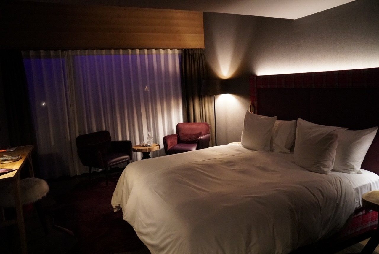 電車を降りると本日宿泊するホテル『ベルグヴェルト・グリンデルワルトBergwelt Grindelwald Alpine Design Report』の送迎バスが待ってくれていました。このホテルは観光旅行者以外にも、アフタースキーの人がレストランやバーで憩う人気のブティックホテルです。