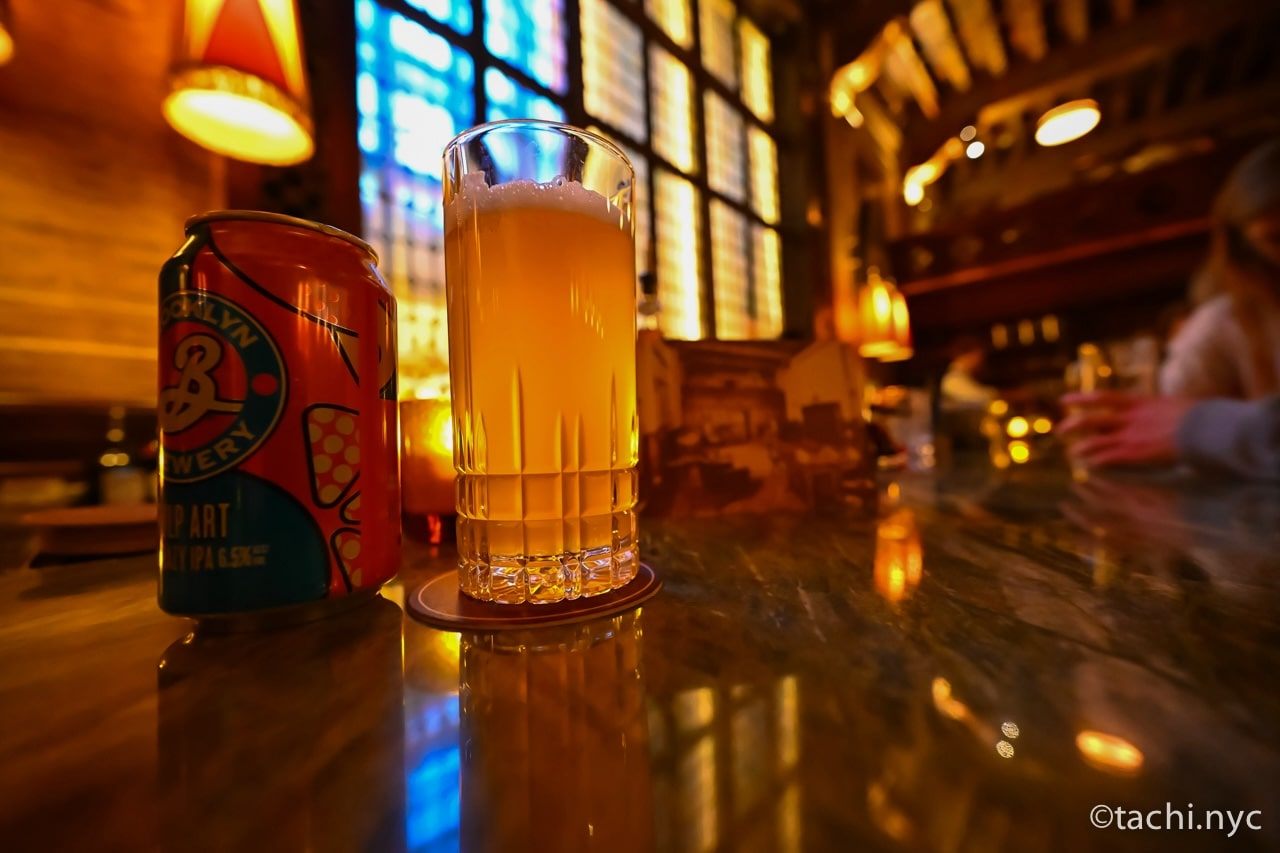 価格設定はお高めなので、ちょっとだけ雰囲気を味わいたいという方は、カウンターでサクッとビールを立ち飲みするのもいいでしょう。缶入りビールが提供され、12ドルです。