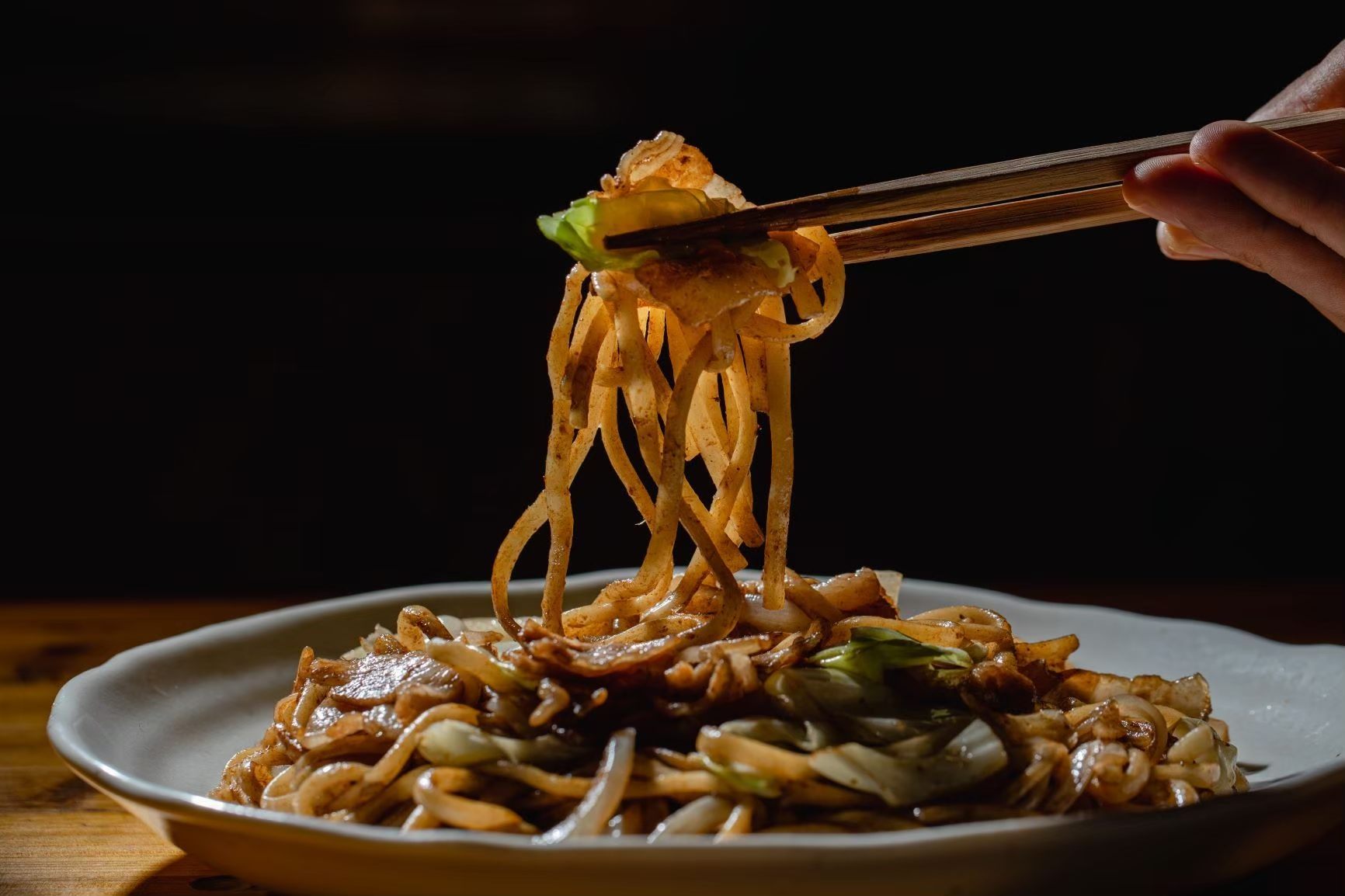 北九州市の中でも小倉が発祥とされる「焼うどん」。先日火災に遭った鳥町食道街の「だるま堂」の初代店主が焼きそば用の麺がなかったため、ゆでたうどんを代用したところモチモチ食感が好評だったのがはじまりとされています。現在は「小倉焼うどん研究所」が結成され、「キャベツは若松産」、「小倉の地酒で香り付けをする」などの細かいルールのもとで、いろいろな店が「小倉焼うどん」を提供しています。居酒屋や食堂、鉄板焼きの店など、いろいろなジャンルのお店で味わうことができます。